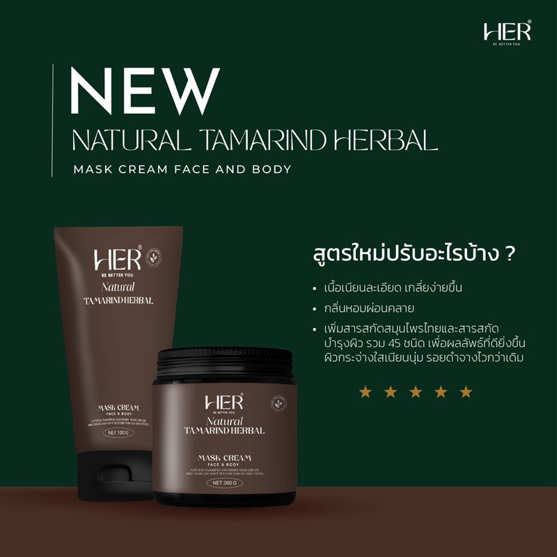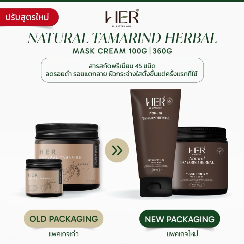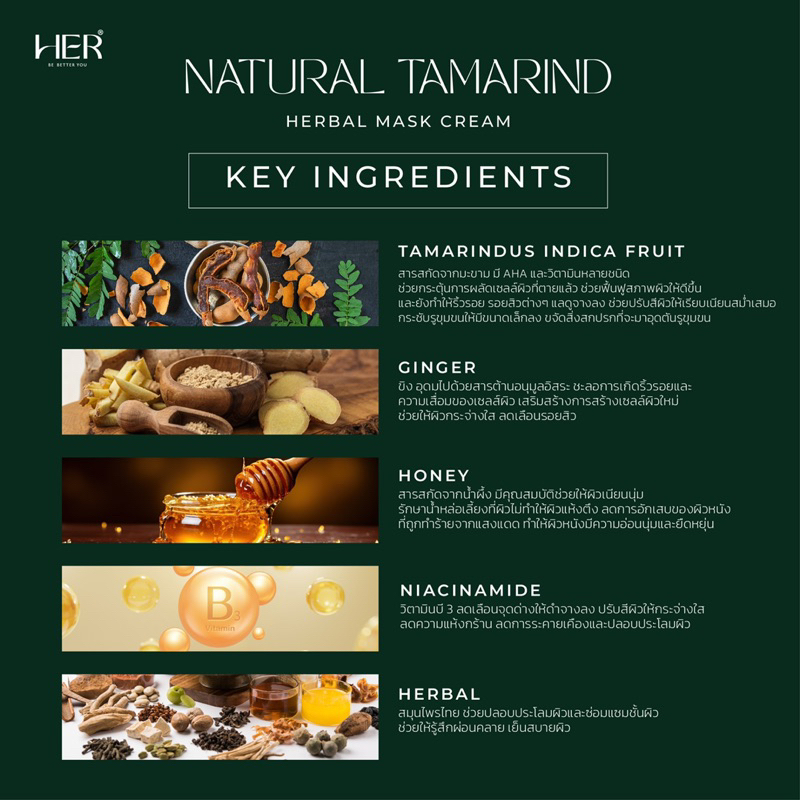 Her Natural Tamarind Mask Cream ครีมมะขามแท้ พอกหน้า ขัดผิวขาว ลดรอยสิว รอยดำ (Face & Body)