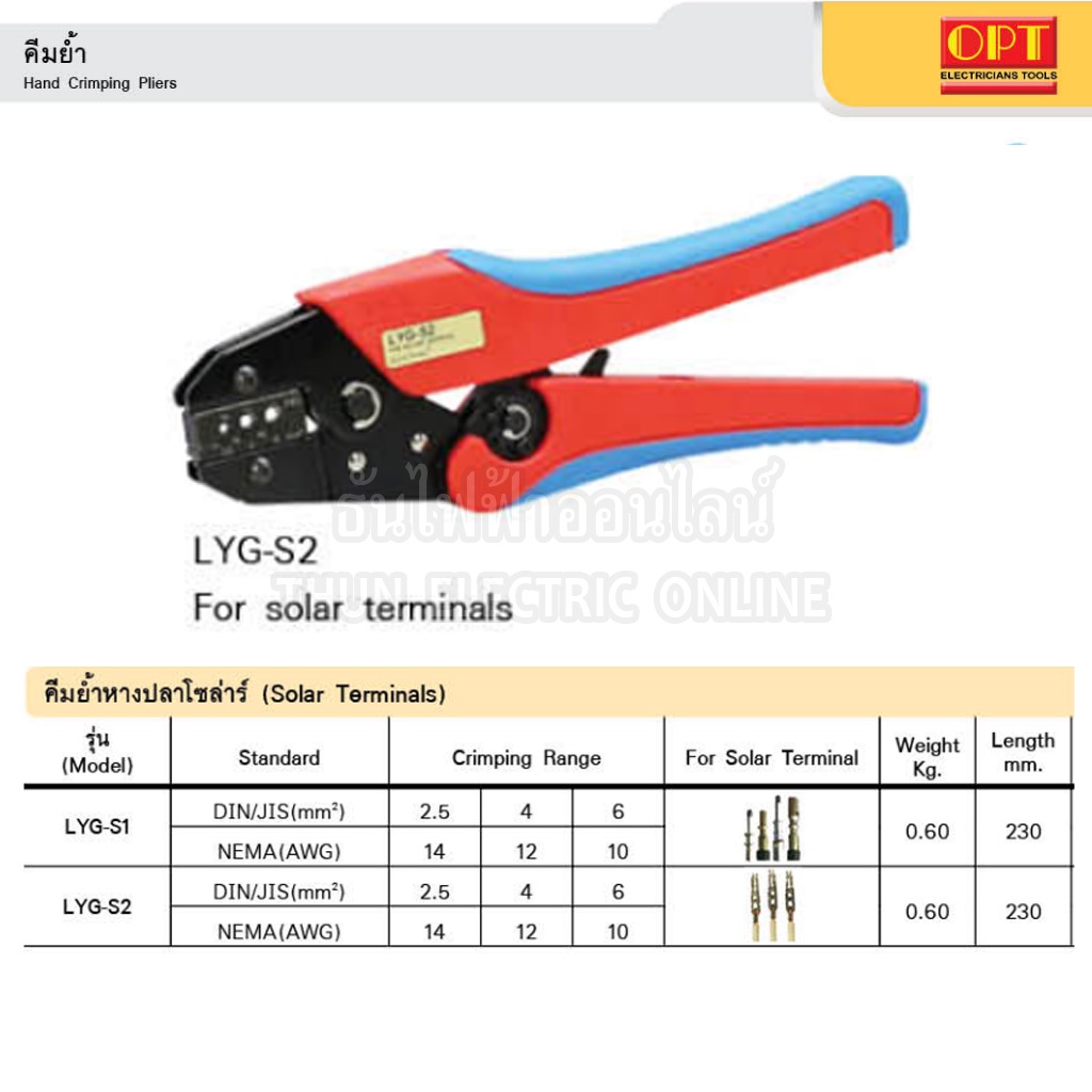 OPT LYG-S2 คีมย้ำหางปลาโซล่า solar MC4 (LY-S2) คีมย้ำ คีมย้ำสายไฟ คีม คีมย้ำแบบจิก คีมย้ำหัว คีมย้ำหัวสายไฟ คีมย้ำหางปลา