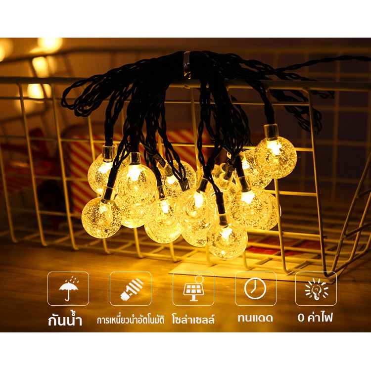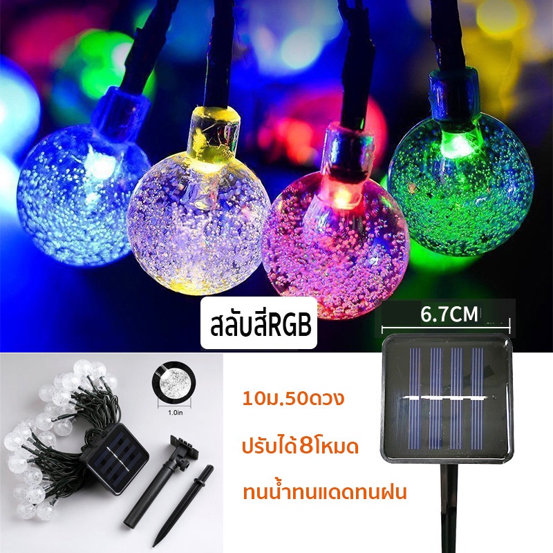 โคมไฟพลังงานโซล่าเซลล์ 50 LED 10 ม. ลูกแก้วไฟคริสต์มาสพลังงานโซล่าเซลล์ไฟพลังงานแสงอาทิตย์กลางแจ้งไฟประดับบ้านพลังงานแสง
