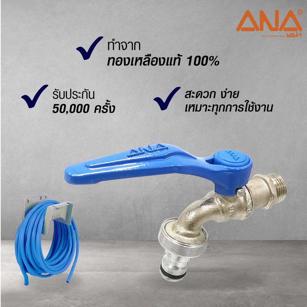 ก๊อกสนามจริงใจ 1/2 (4หุน) ANA (119) ปากสวมเร็ว ก๊อกทองเหลือง 100% รับประกัน 50,000 ครั้ง ผลิตประเทศไทย