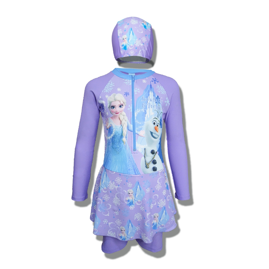 Disney Frozen ชุดว่ายน้ำเด็กผู้หญิงกระโปรงซิป-กางเกง ลายโฟรสเซ่น แถมหมวก และ ถุงใส่ชุด จาก NA Dreams