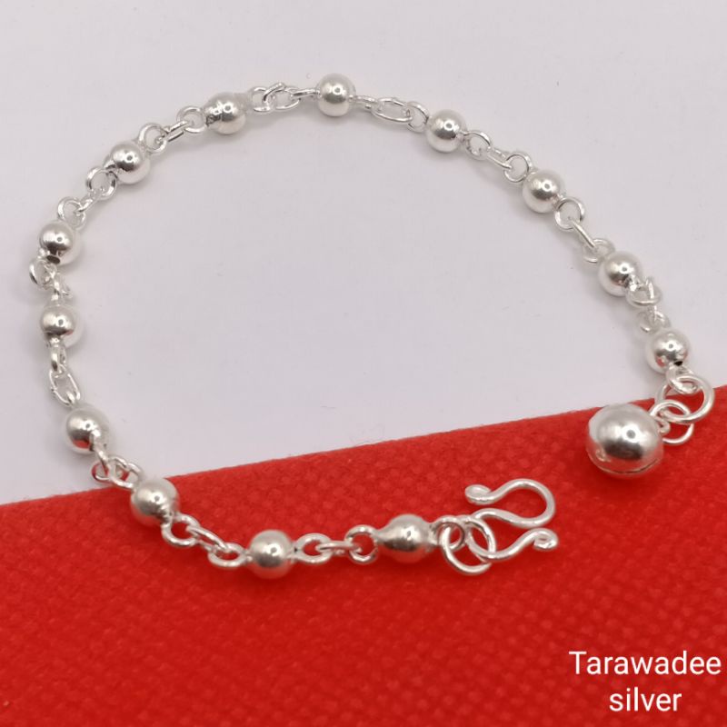 สร้อยข้อมือเงินแท้92.5% เม็ดประคำโปร่ง ขนาด3มิล เงินแท้ทั้งเส้น มีใบรับประกัน