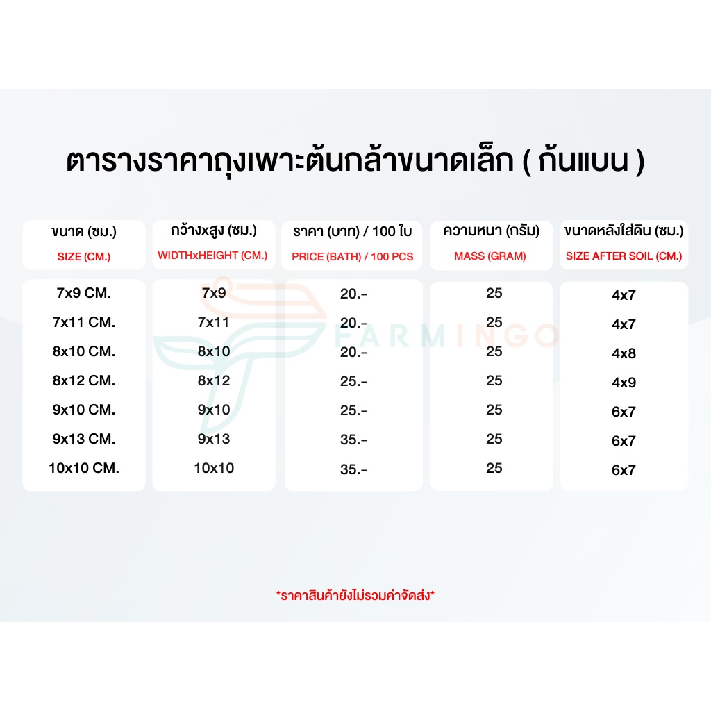 ถุงเพาะชำต้นกล้าแบบย่อยสลายได้ (แบบบาง) แพ็คละ 100 ใบ