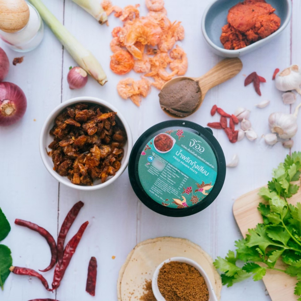 น้ำพริกกุ้งเสียบอบแห้ง น้ำพริกกุ้งเสียบภูเก็ต น้ำพริกกุ้งเสียบสามรส ขนาด 150 กรัม จี้ออ
