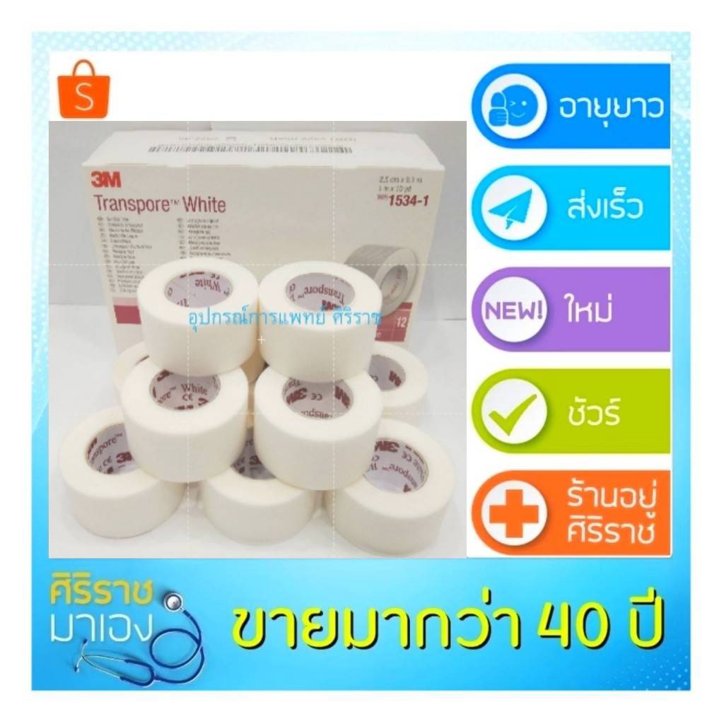 Transpore White 1/2 นิ้ว1 นิ้ว ราคาต่อม้วน
