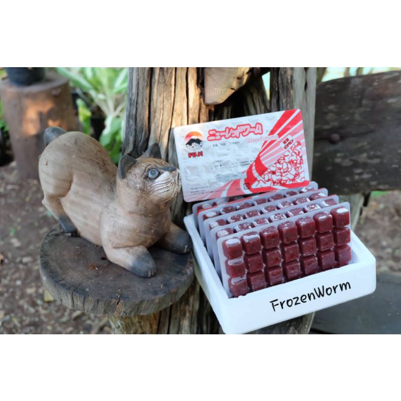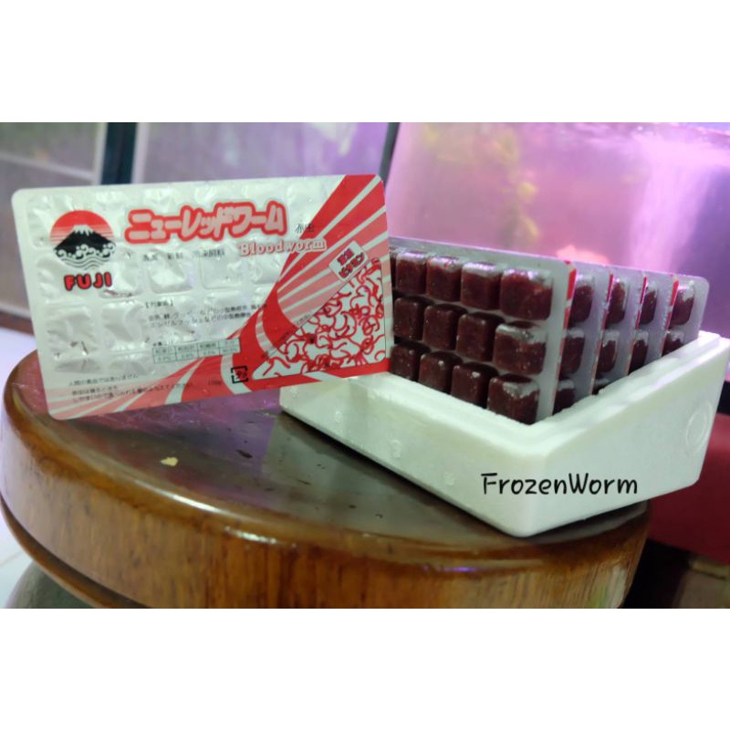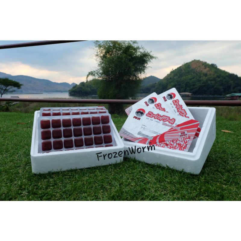 หนอนแดงแช่แข็งFuji 10 แพ็ค(1กล่อง)⚠️โปรดระวังสินค้าลอกเลียนแบบ⚠️ เกรดA อาหารปลาและกุ้งแถมฟรี!!กล่องโฟมเก็บความเย็น