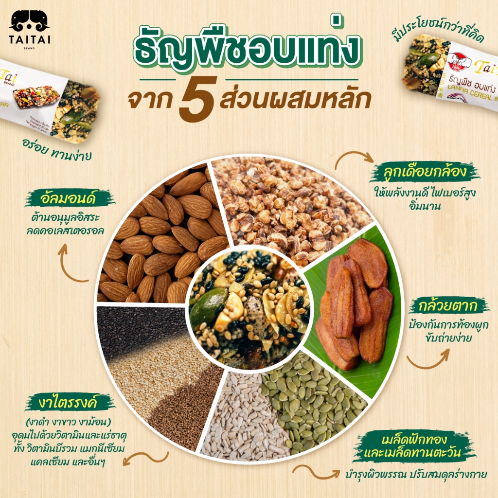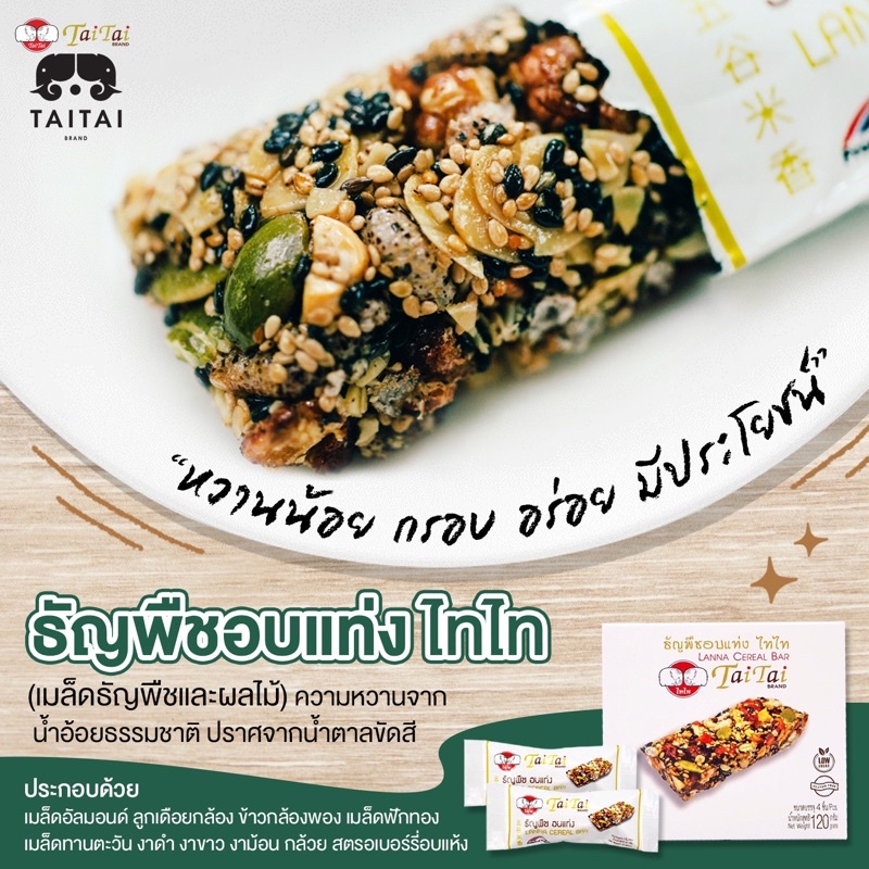 เจ ธัญพืบอบเเท่ง ซีเรียลบาร์ 120g (ตราไทไทแบรนด์) แคลต่ำ หวานน้อย Cereal Bar ธัญพืชเต็มๆคำ ใช้ความหวานจากน้ำอ้อยแท้