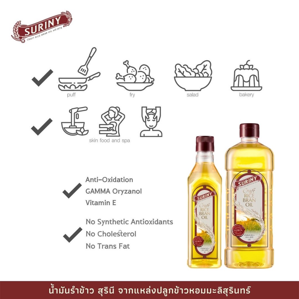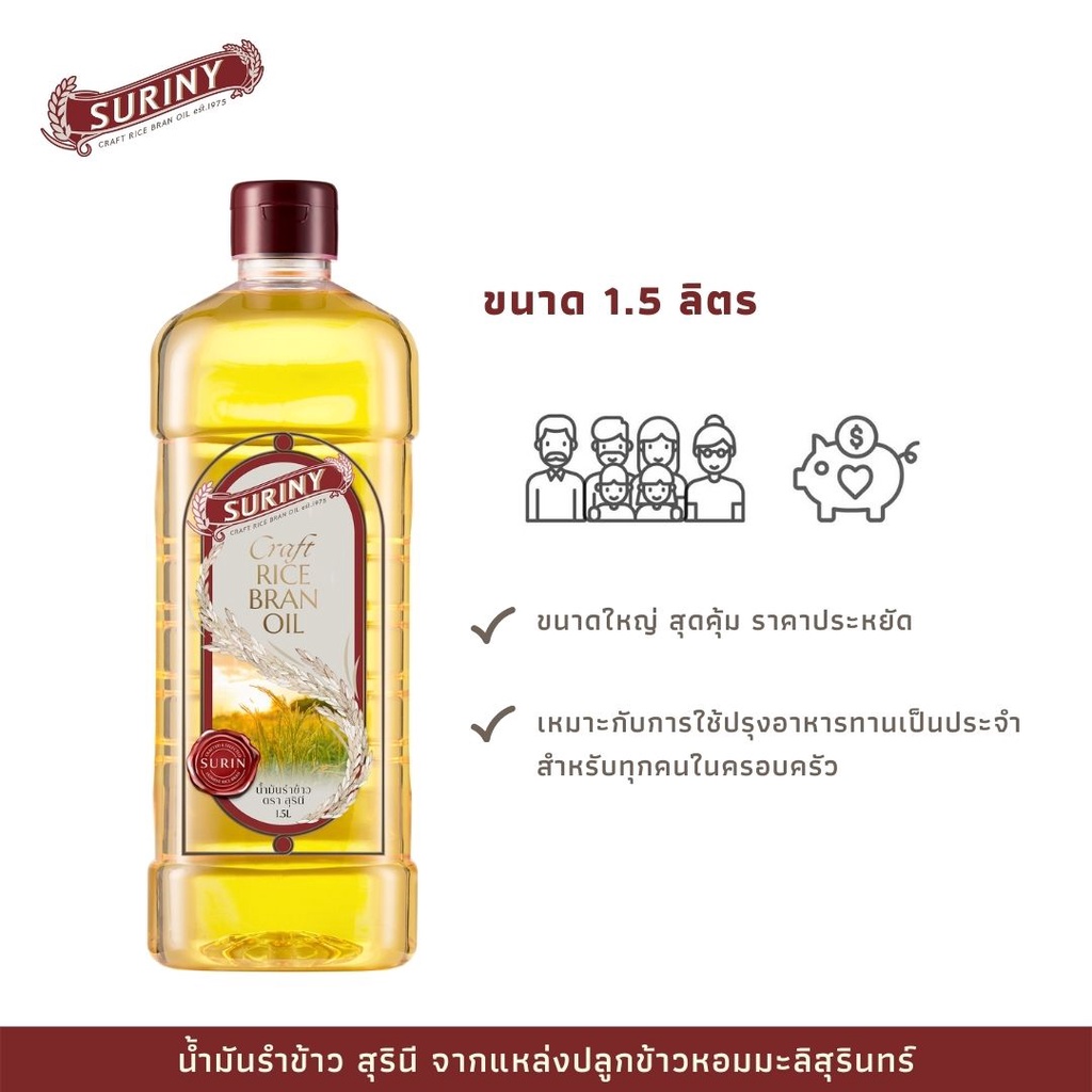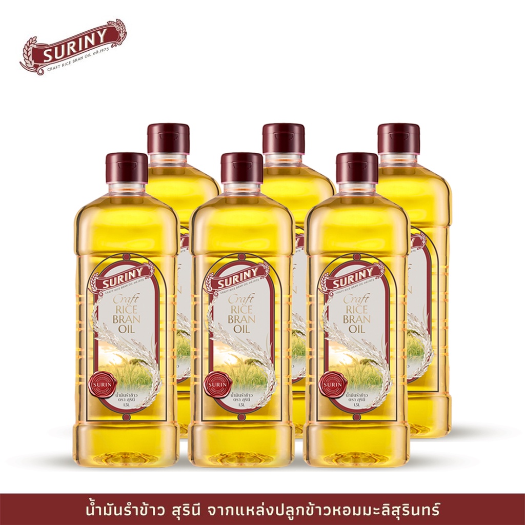 (ยกลัง 6ขวด) SURINY สุรินี น้ำมันรำข้าว จากรำข้าวหอมมะลิ แกมมา-โอริซานอลสูงถึง15,500ppm ขนาด 1.5ลิตร
