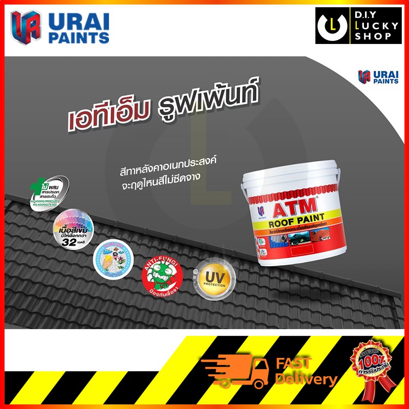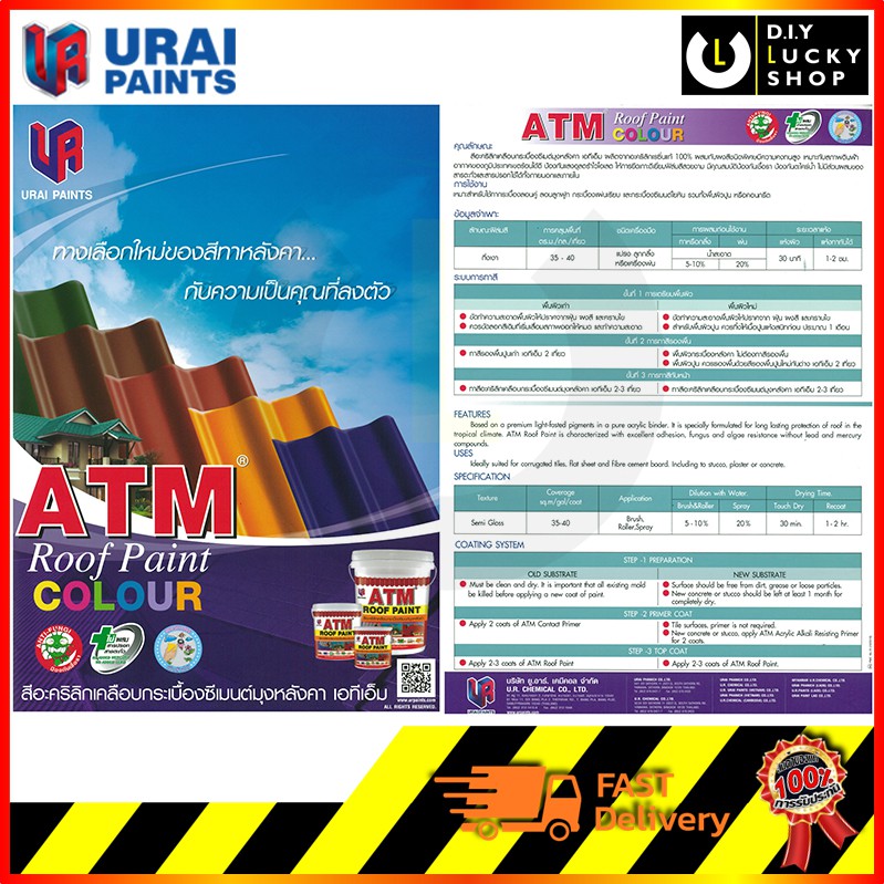 สีน้ำ อะครีลิค สีทาหลังคา สีทากระเบื้องปูน ทาตัวหนอน อิฐบล็อค ทาพื้น ATM เอทีเอ็ม (ขนาด 1/4กล. , 0.946 ลิตร) Roof Paint