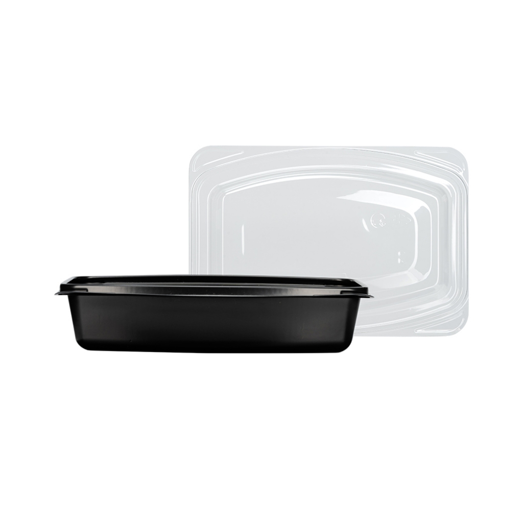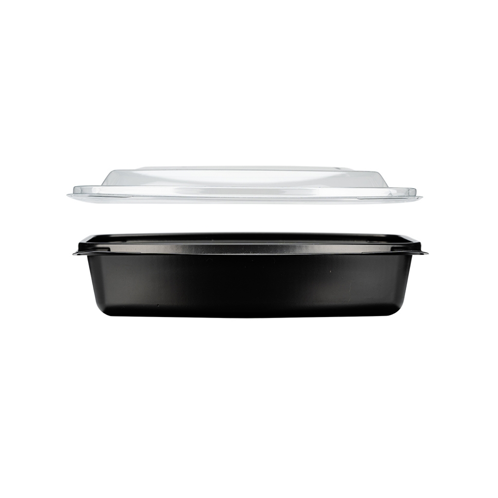กล่องข้าวพลาสติก สีดำ 1ช่อง พร้อมฝา [300 ชุด] เบนโตะ Bento (โปรดอ่านรายละเอียดก่อนกดสั่งซื้อ) GreenPacks