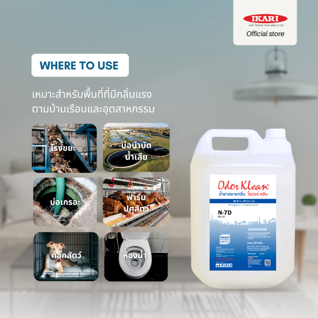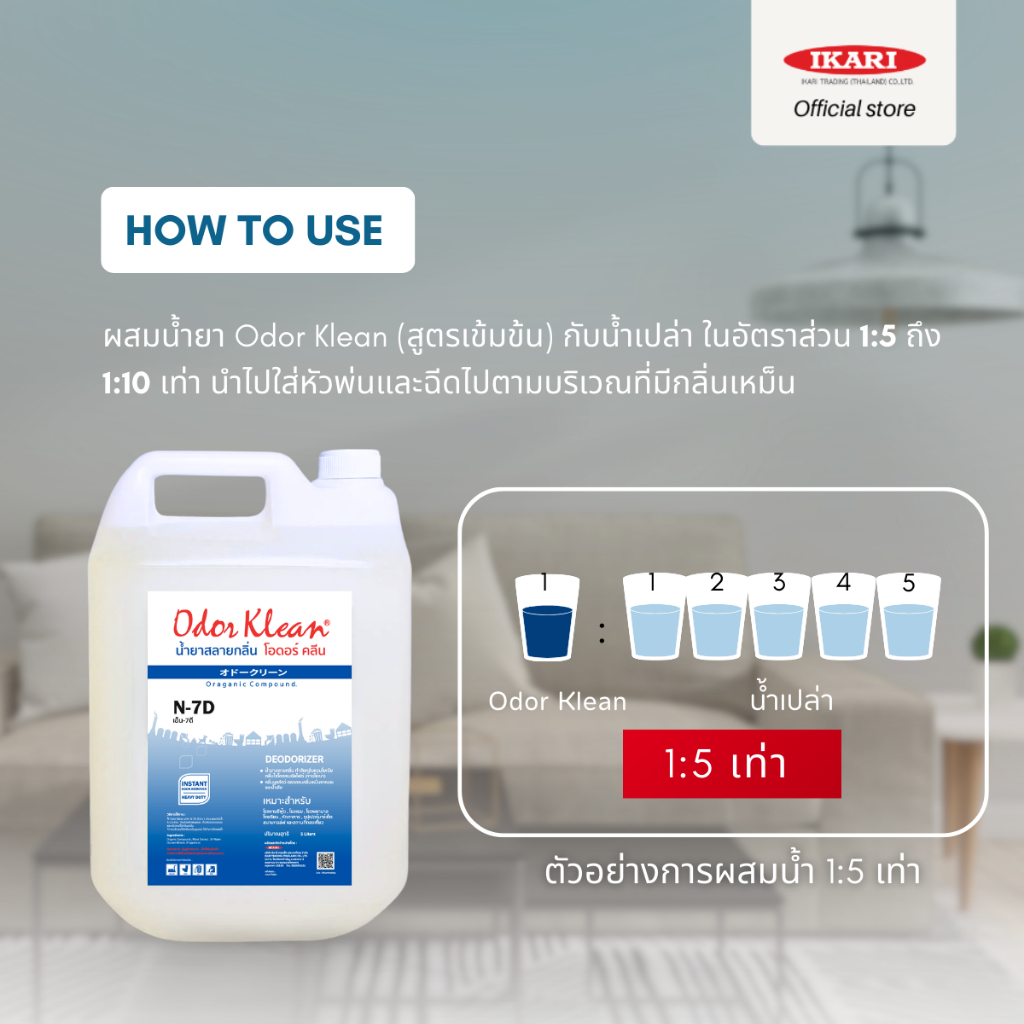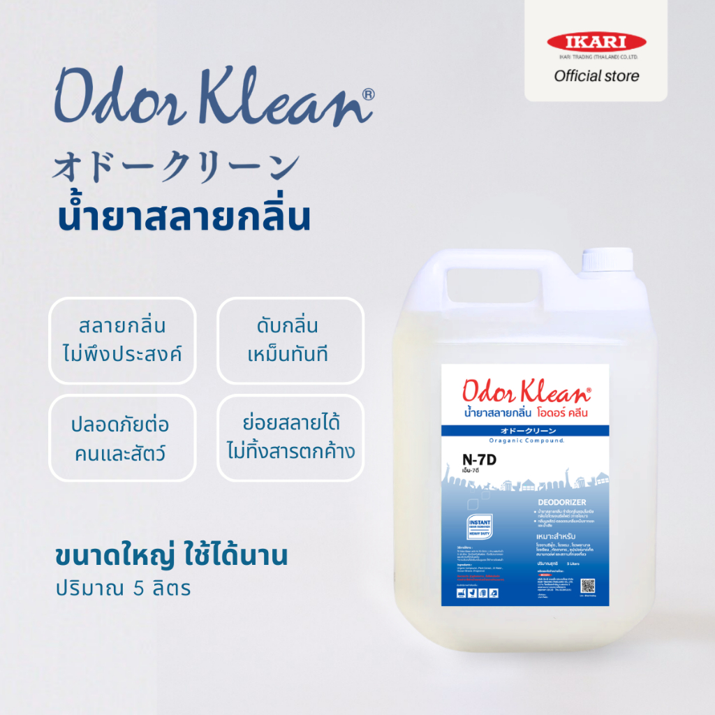 Odorklean N7D (แกลลอน ขนาด 5 ลิตร) น้ำยาสลายกลิ่นเหม็นสูตรเข้มข้น ดับกลิ่นเหม็นอับ กลิ่นขยะเน่าเหม็น ดับกลิ่นทันที