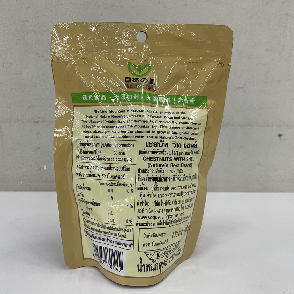 (ซื้อ 1 แถม 1) Nature's Best Chestnut เนเจอร์ เบสท์ เชสนัท เมล็ดเกาลัดคั่ว 100 กรัม
