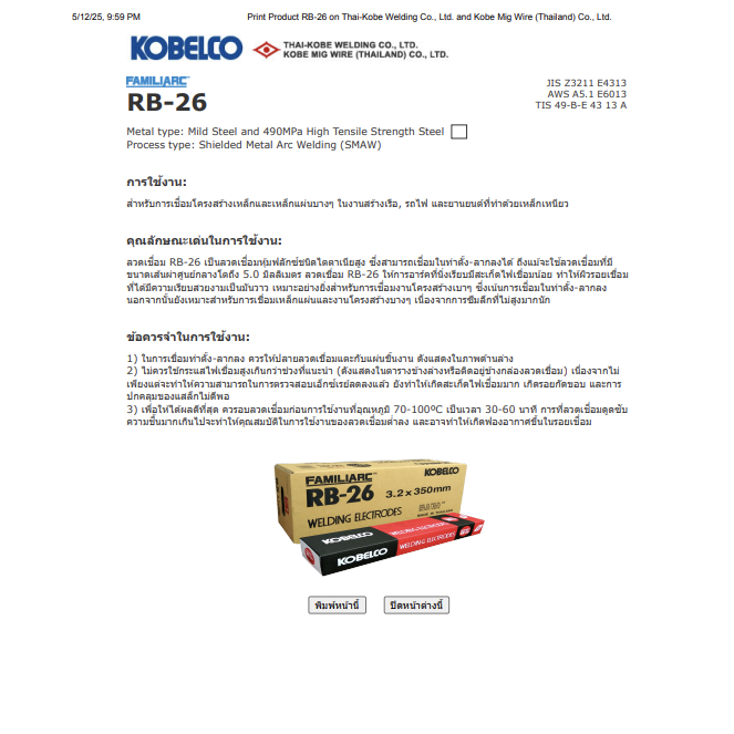 KOBELCO ลวดเชื่อมไฟฟ้า โกเบ 2.6 2กิโลกรัม