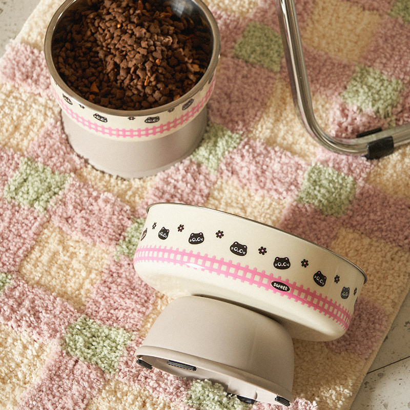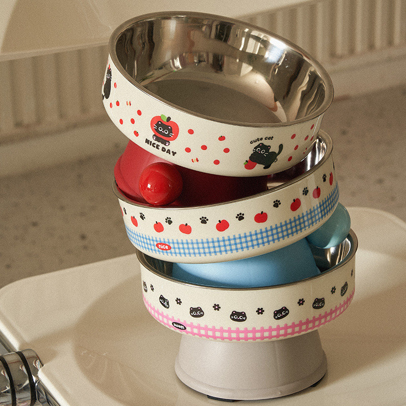 ชามสแตนเลสสำหรับสัตว์เลี้ยง ชามสูงแบบการ์ตูน ชามเดี่ยวป้องกันปากดำ ชามอาหารแมว