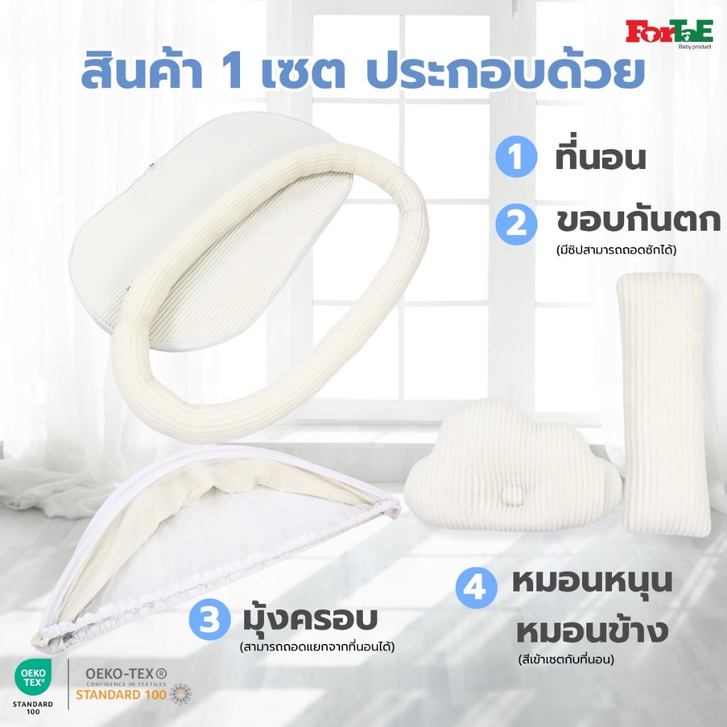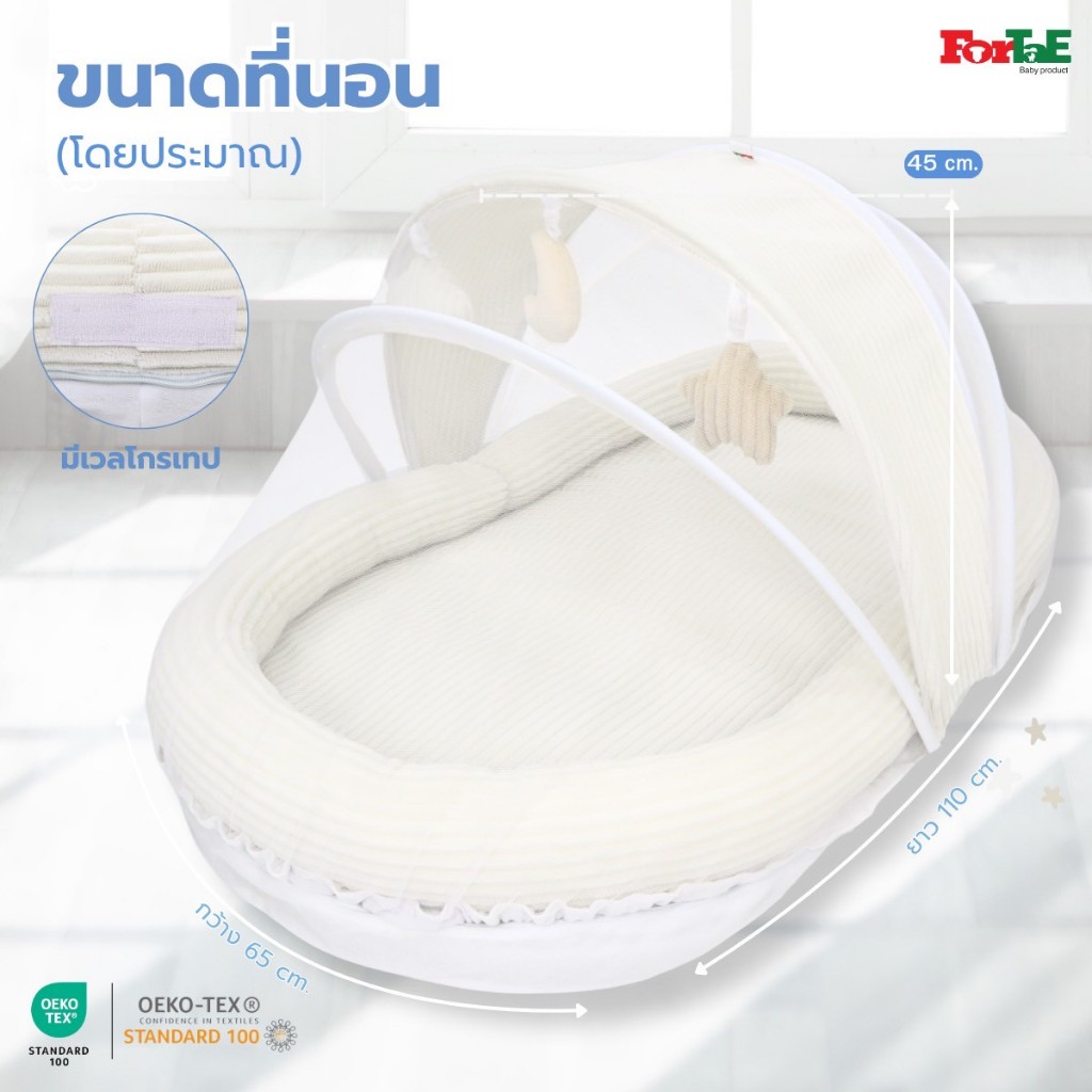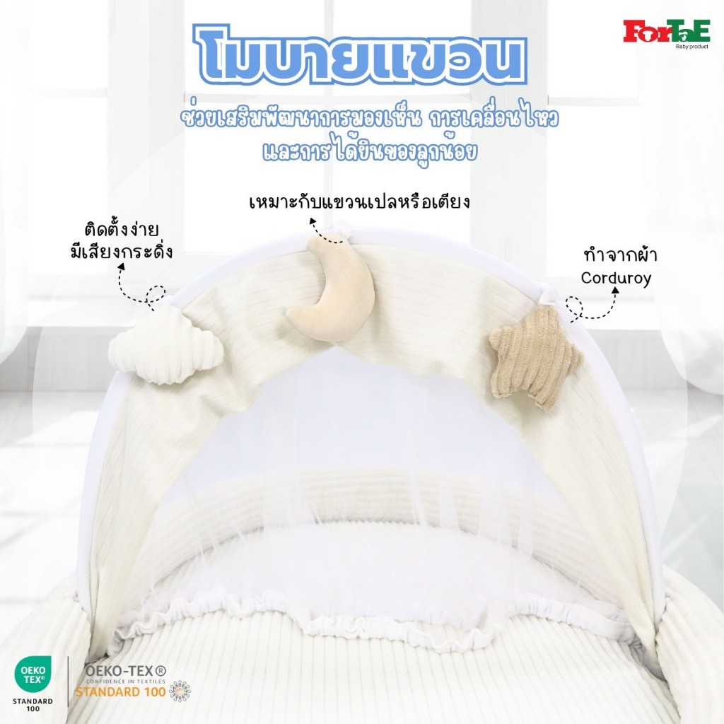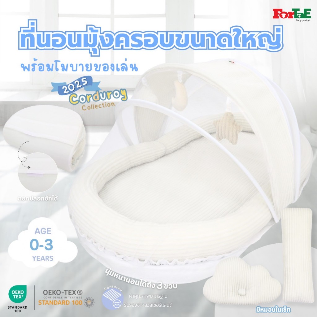 CC032 Fortae(ฟอร์เต้) ที่นอนเด็กมุ้งครอบ ที่นอนมุ้งพร้อมโมบายของเล่น ขนาดใหญ่ ผ้าCorduroy ถอดซักได้