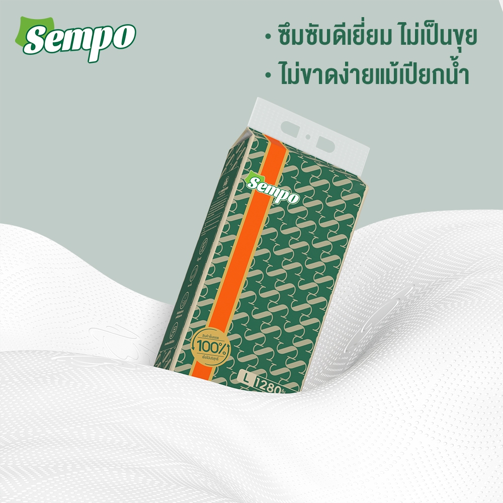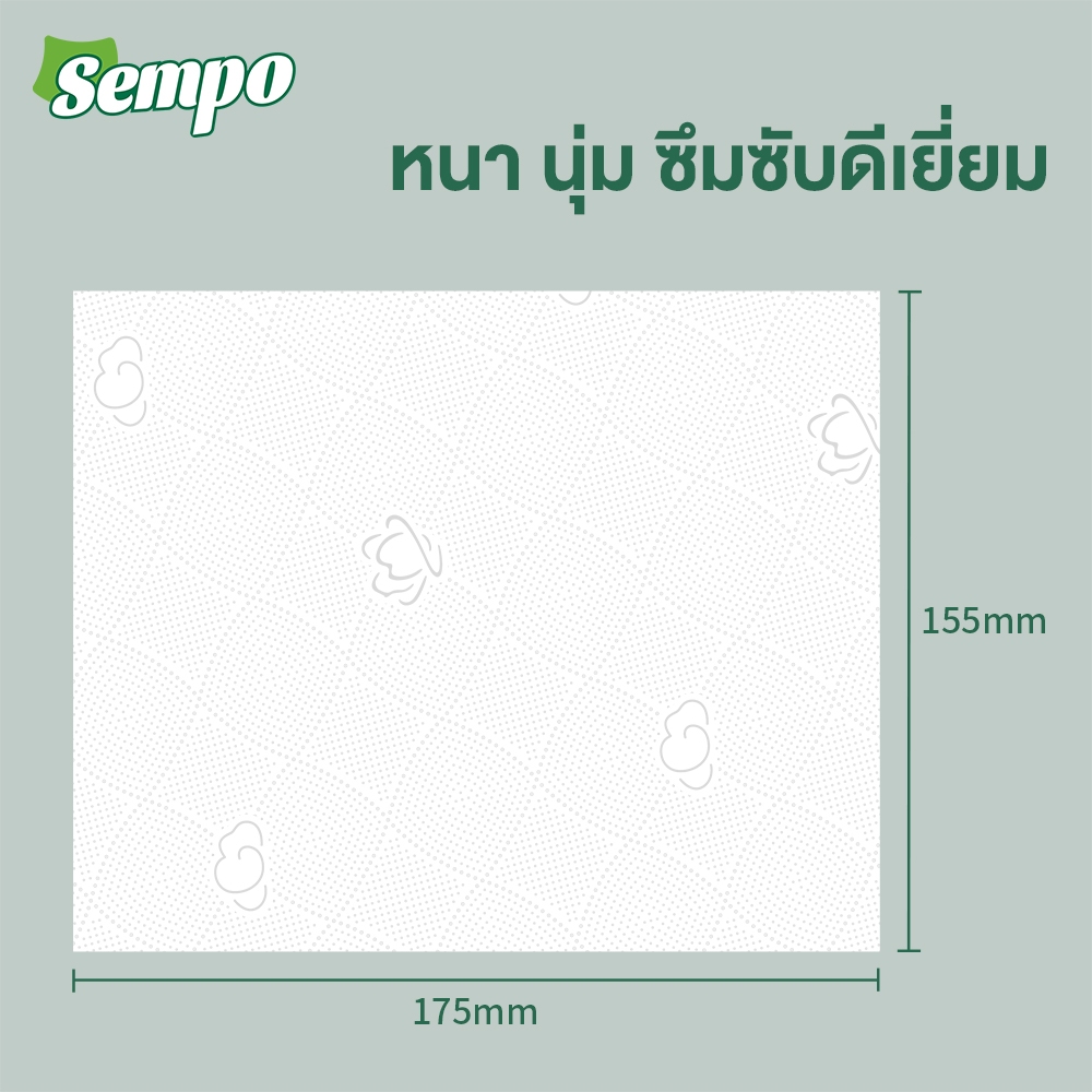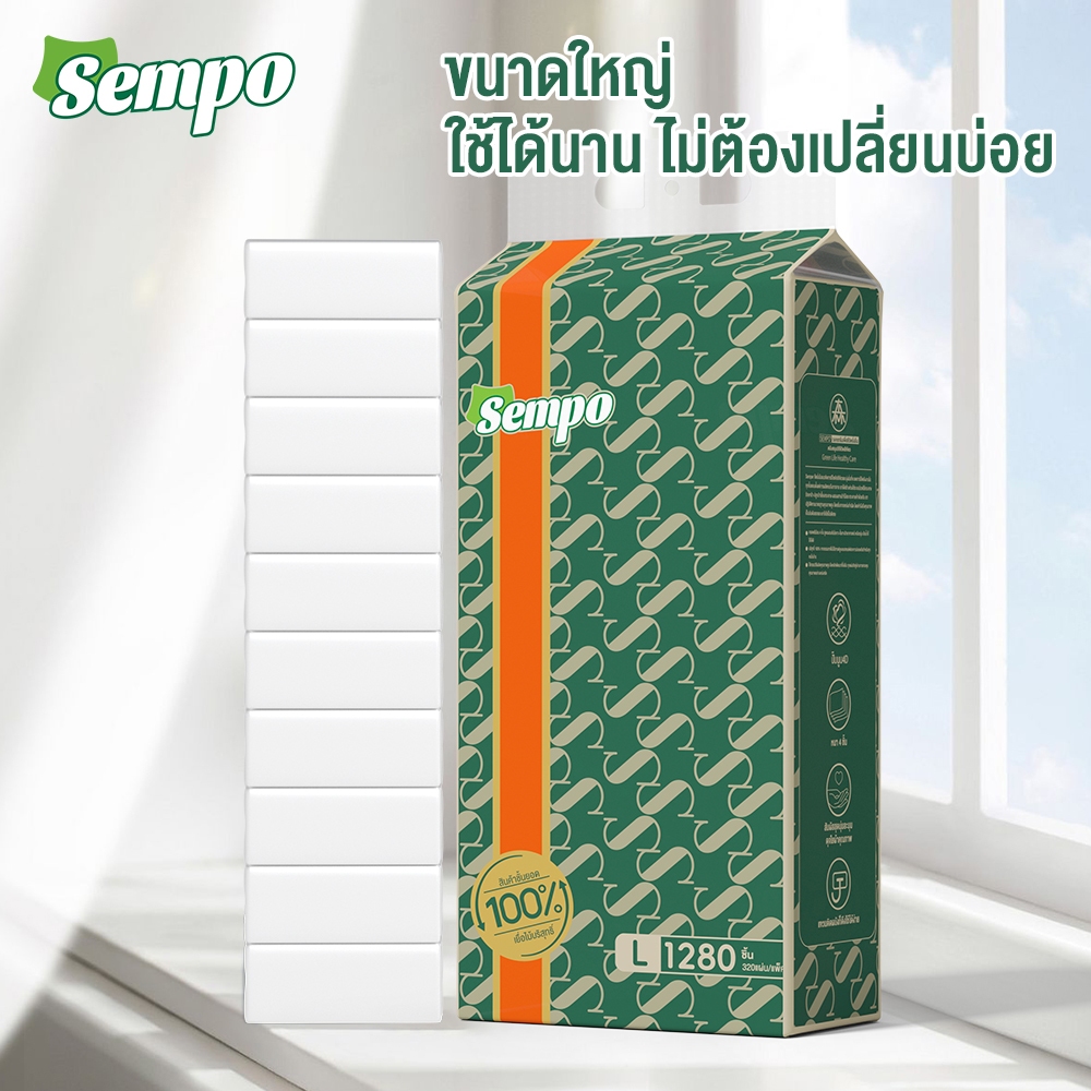 【6แพ็ค】กระดาษทิชชู่ Sempo 1แพ็ค/1280แผ่น 155x175 มม.ไม่เป็นขุย 4ชั้น GB/T 20808 ทิชชู่เช็ดหน้า