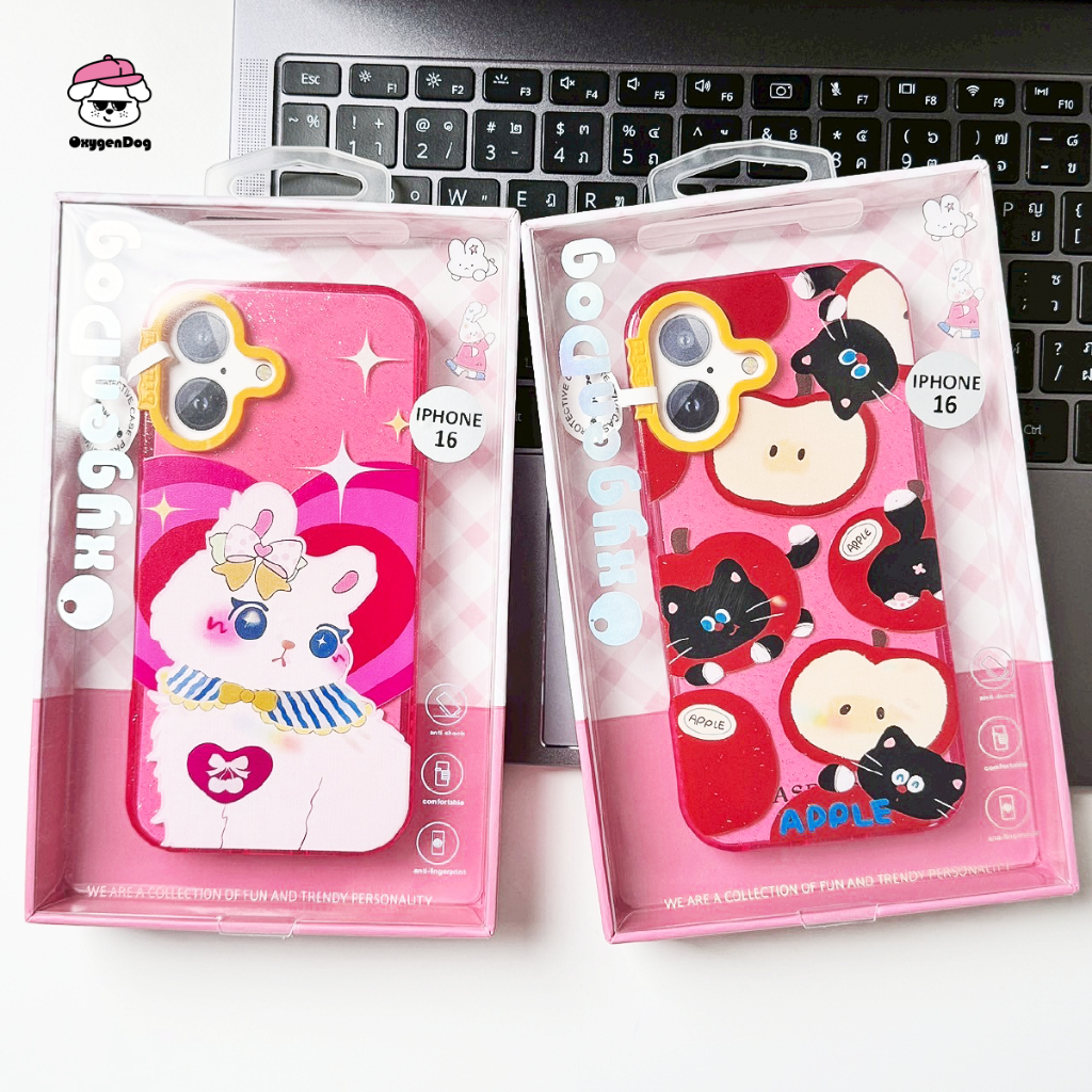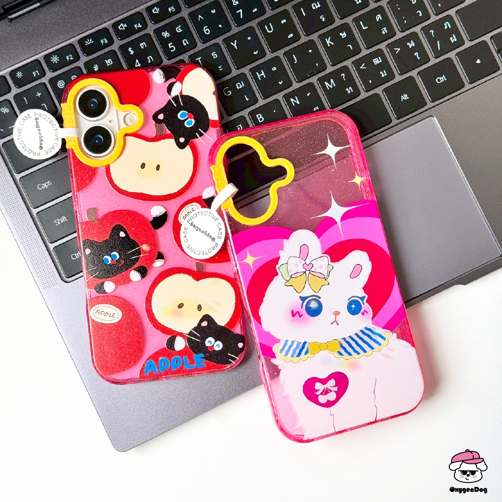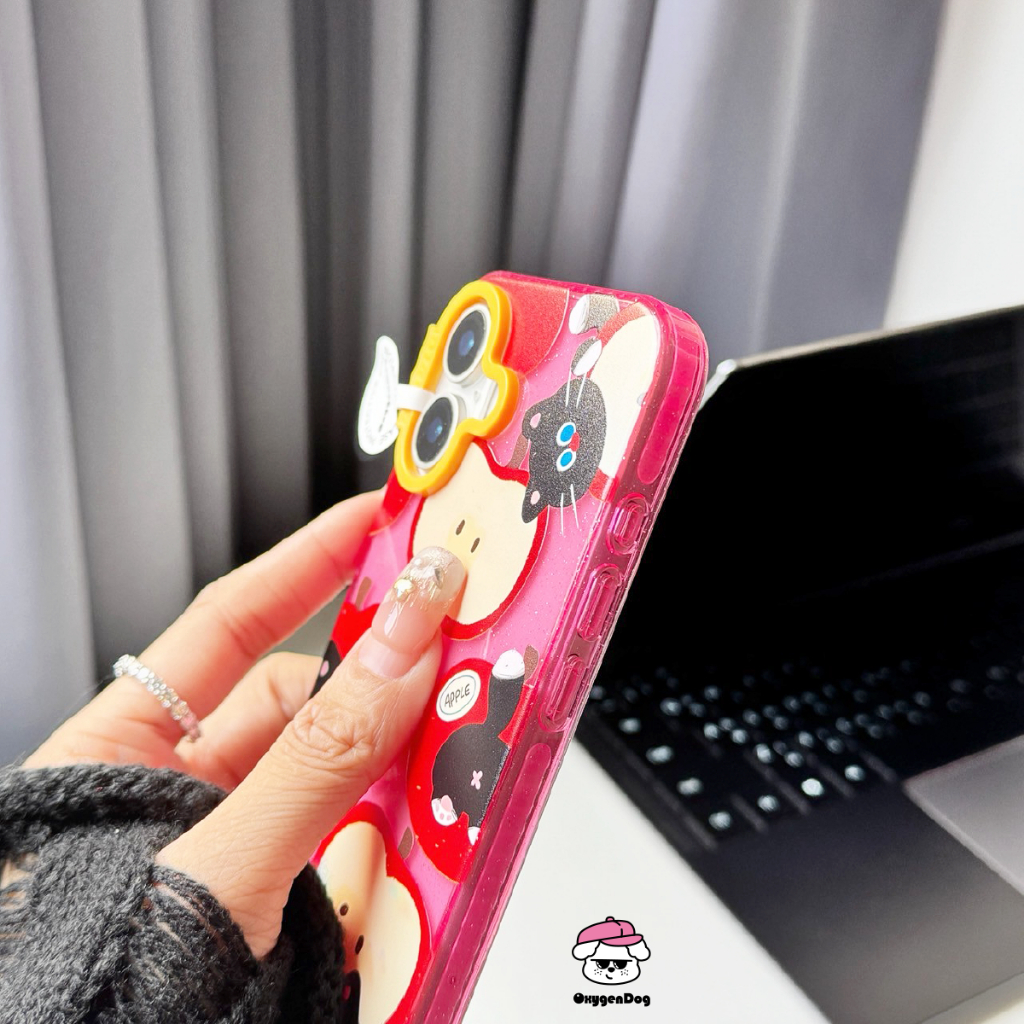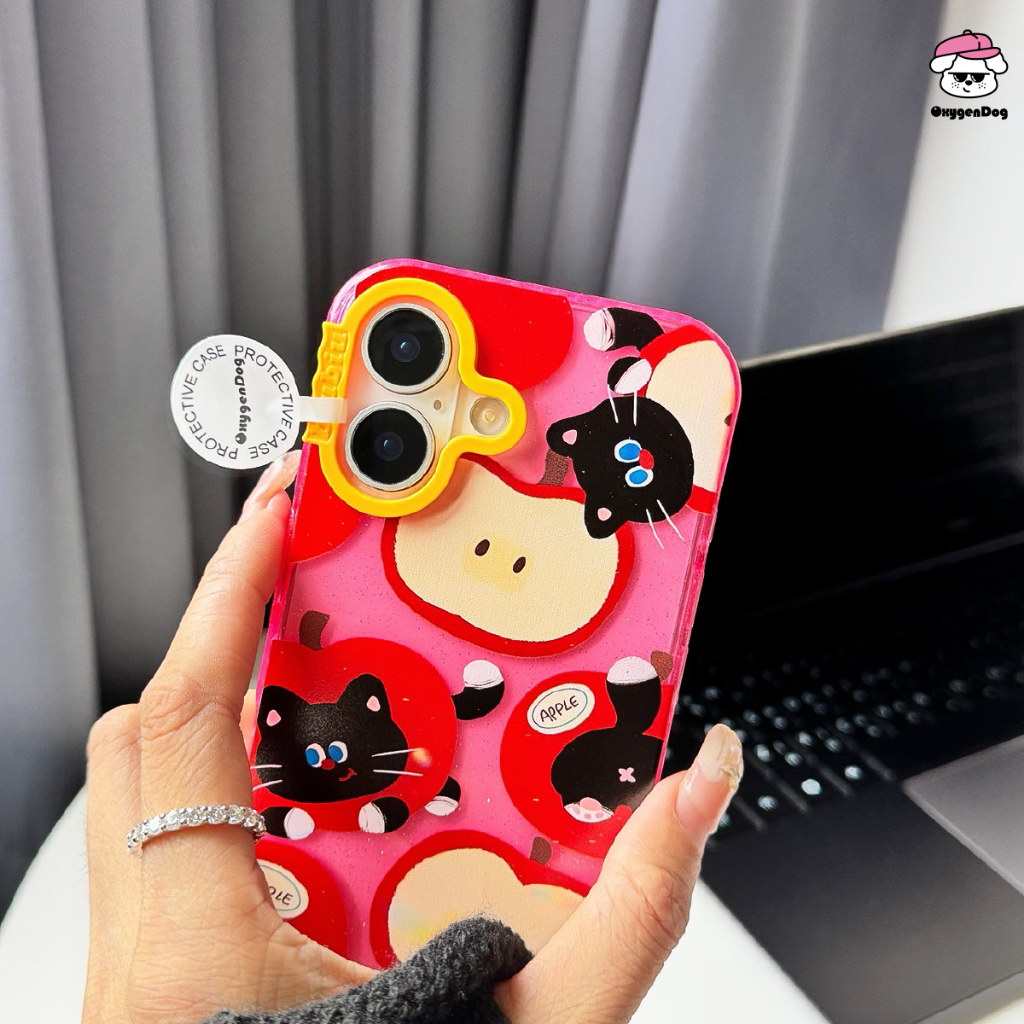Oxygendog case เคสไอโฟน กลิตเตอร์ ลายการ์ตูน แมวดำ แมวขาว For iPhone 16ProMax 16 15ProMax 15 14 13