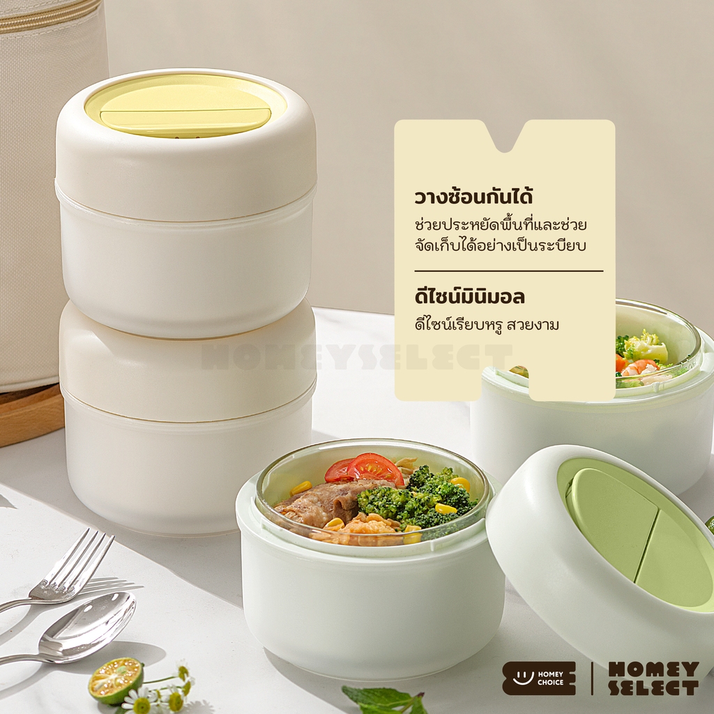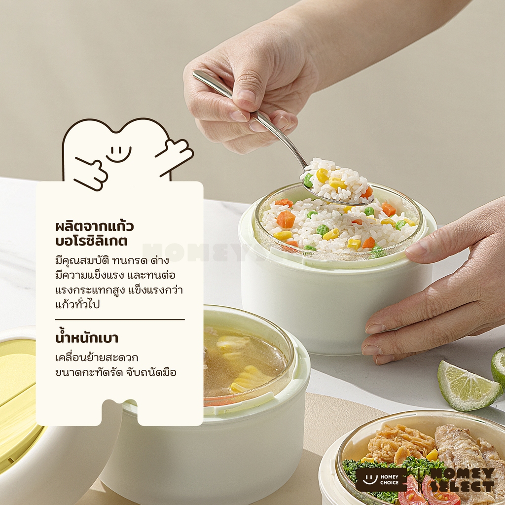 HomeyChoice ชุดกล่องอาหารแก้ว 2 ชิ้น พร้อมกระเป๋าเก็บอุณหภูมิ เข้าไมโครเวฟได้ ขนาด 500ml รุ่น 8401