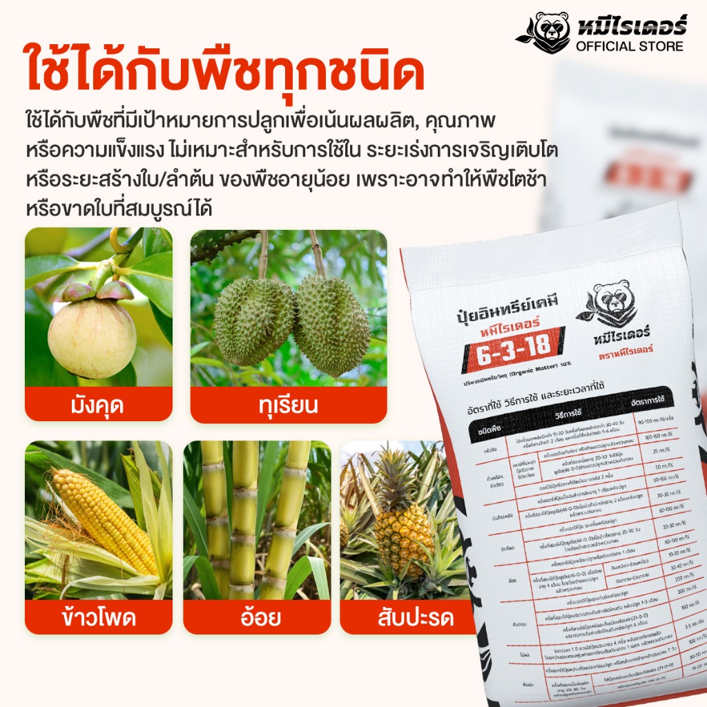 ปุ๋ยอินทรีย์เคมี 6-3-18 หมีไรเดอร์ (เม็ดคอมปาวด์ซัลเฟต) | เพิ่มน้ำหนัก ลูกใหญ่ ทรงสวย แก้พูเบี้ยวได้ดี