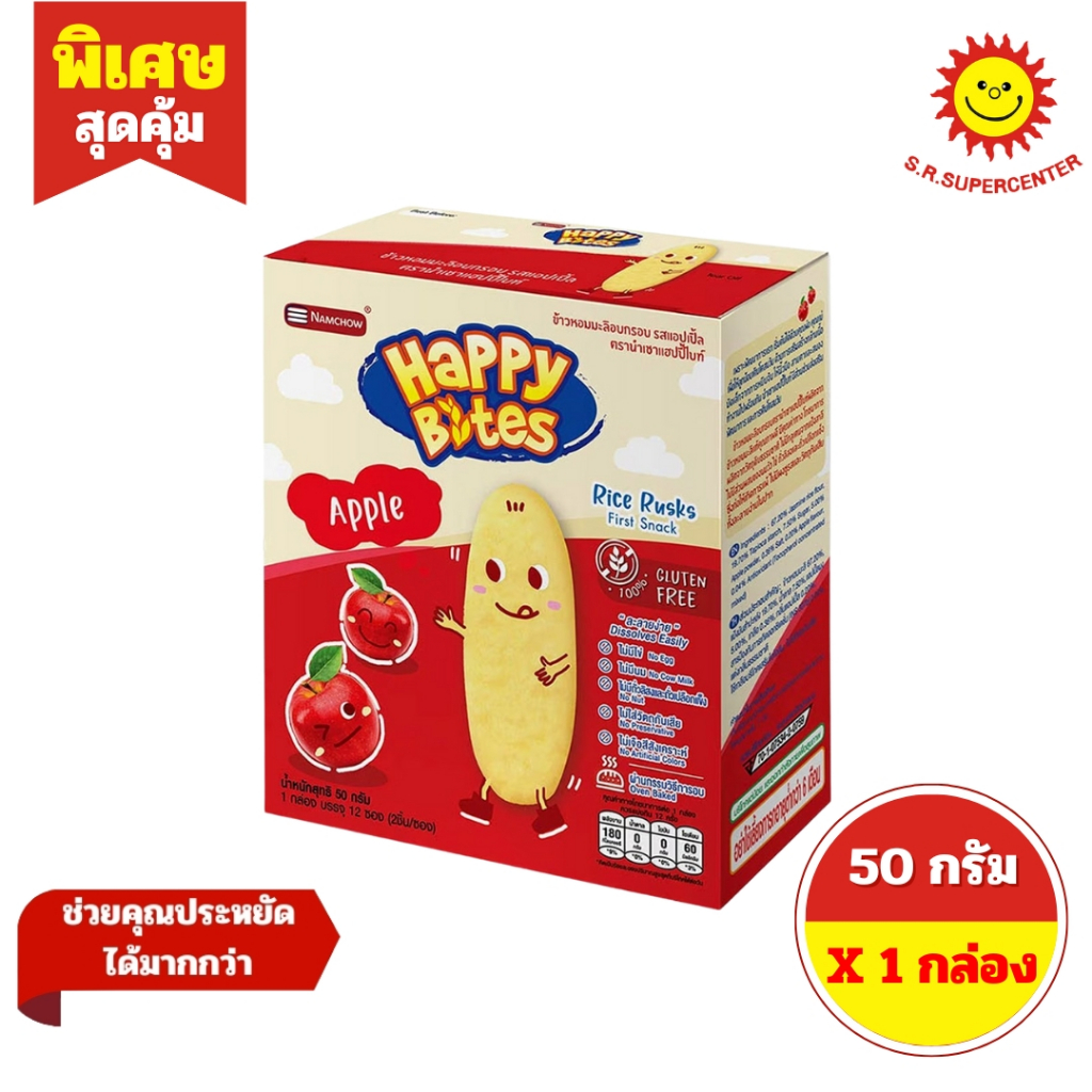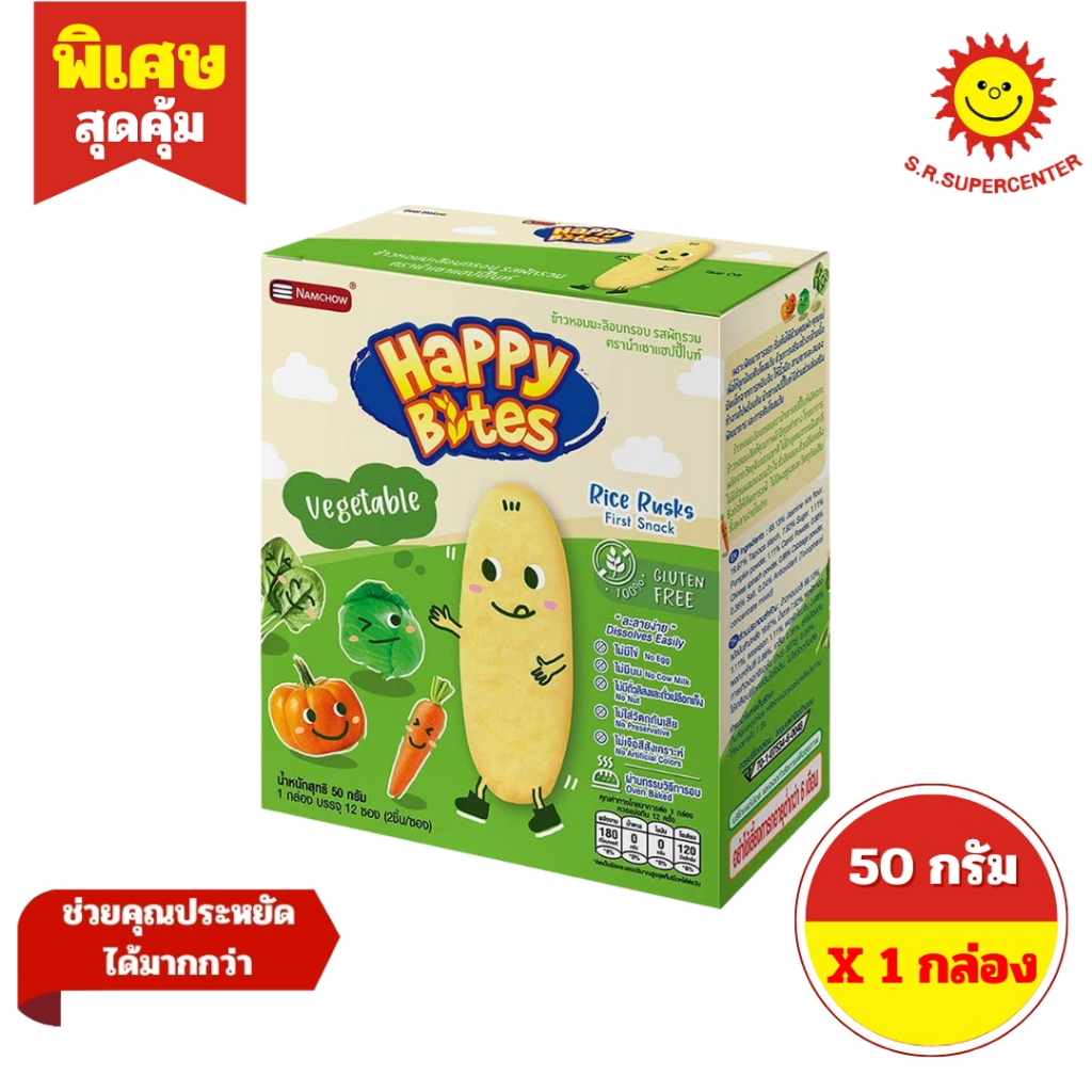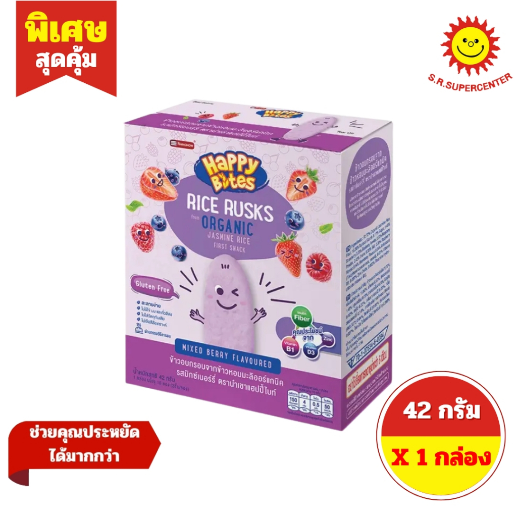 [ 1กล่อง ] Happy Bites แฮปปี้ไบท์ ข้าวหอมมะลิอบกรอบ สำหรับเด็ก ขนาด 42-50 กรัม (1กล่อง) มี 7 รสชาติ