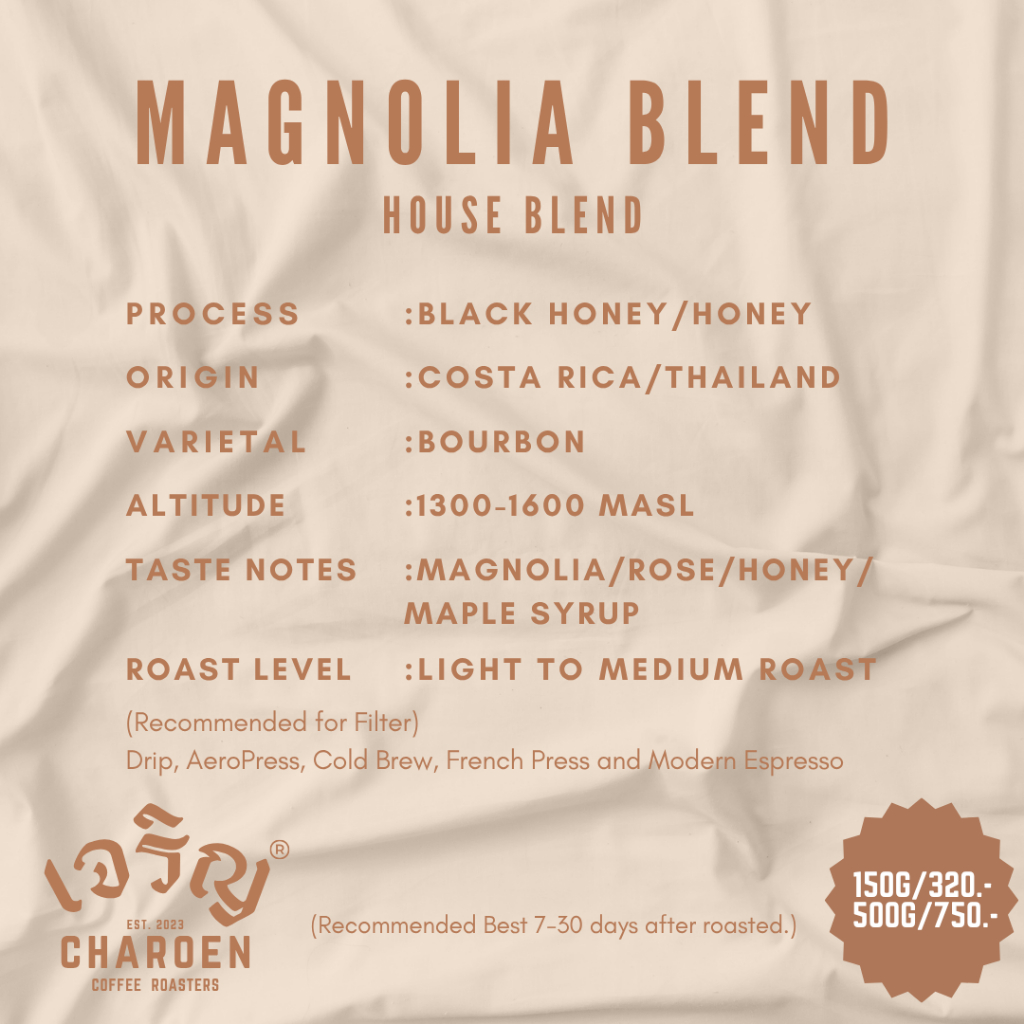 Charoen Coffee Roasters เมล็ดกาแฟ Magnolia - House Blend, Light To Medium Roast