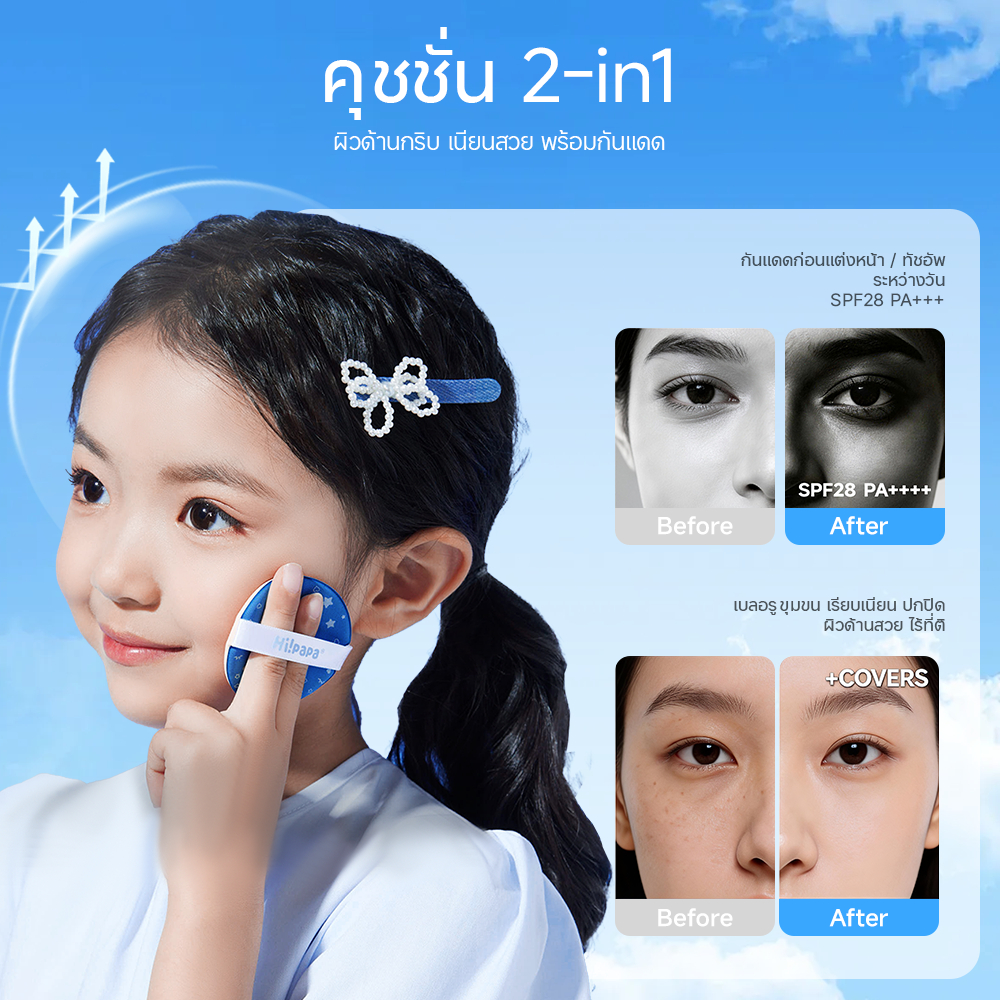 Hi!papa Sunscreen Cushion กันแดดเด็กแบบ SPF28 PA+++ เนื้อบางเบา ปกป้องผิวเด็กอ่อนโยน ปลอดภัยสำหรับผิวบอบบาง