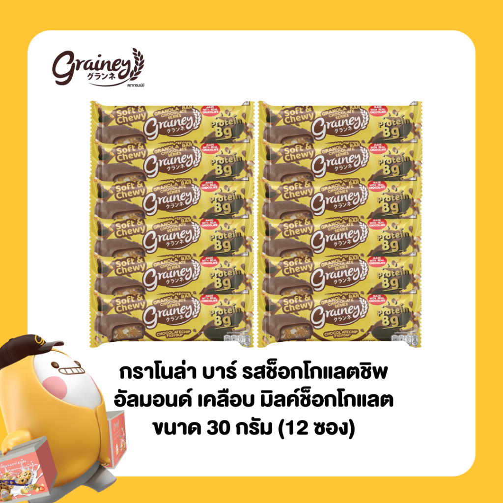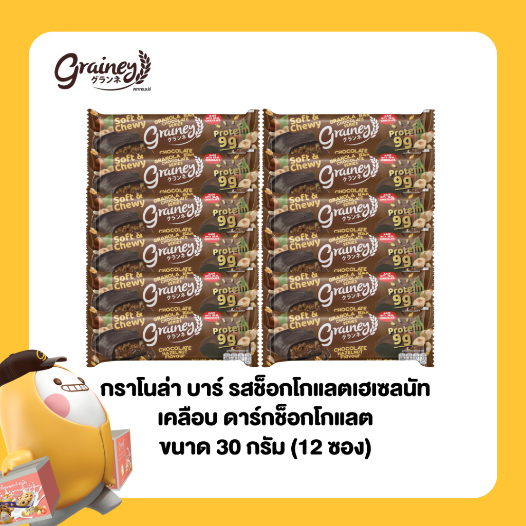 Grainey กราโนล่าบาร์ เคลือบช็อกโกแลต ขนาด 30 กรัม จำนวน 12 ซอง