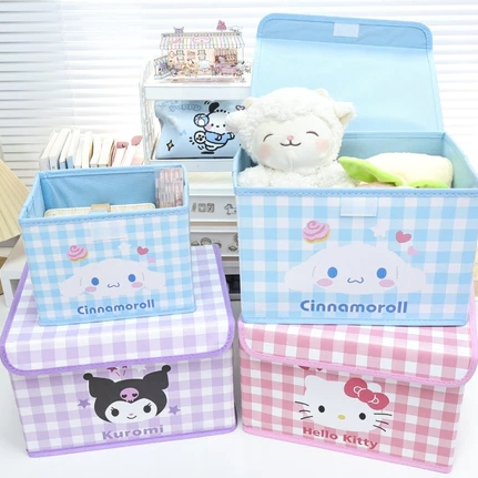 Sanrio Hello Kitty กล่องเก็บของพับได้ My Melody Kuromi Desktop Organizer กล่องแต่งหน้าสาวของขวัญ