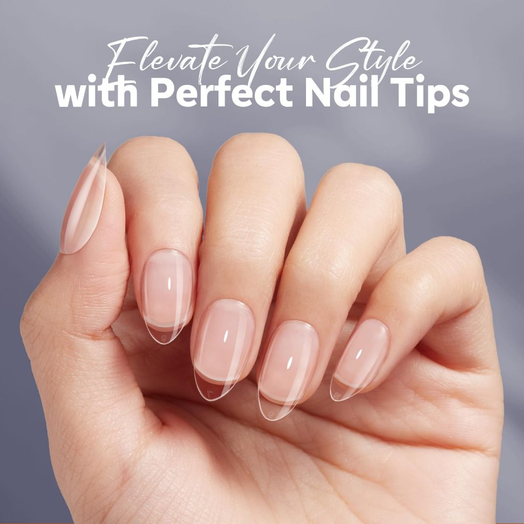 Modelones เล็บปลอมอัลมอนด์สั้น 216 ชิ้น 12 ไซส์ Soft Gel Tips ใส ครอบเต็มเล็บ ต่อเล็บ DIY