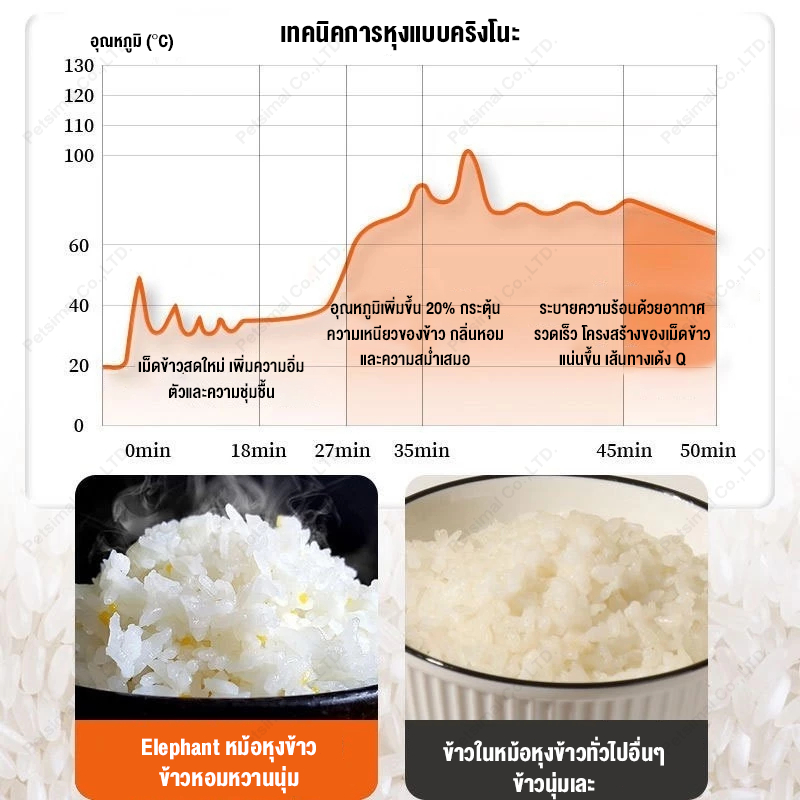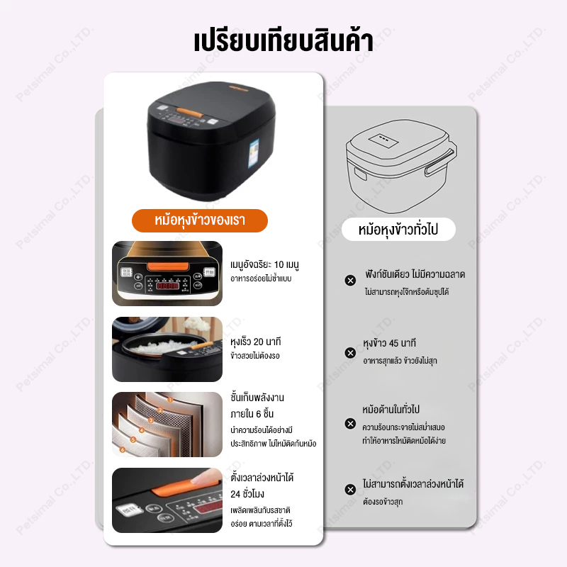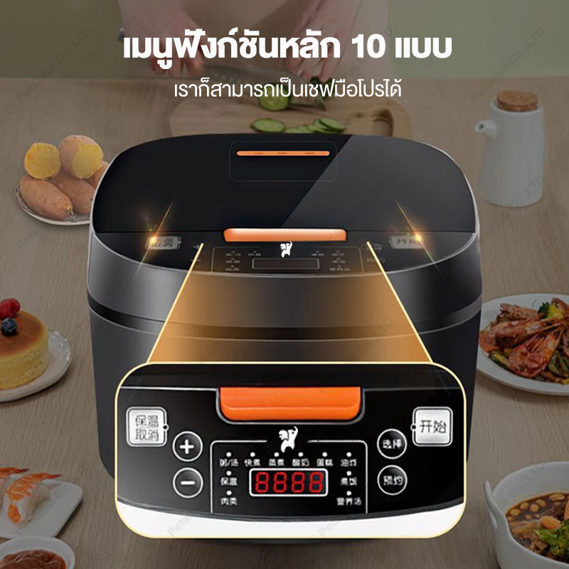 หม้อหุงข้าวสมาร์ท 5ลิตร หม้อหุงข้าว 900วัตต์ ตั้งเวลาหุง12ชม ฟังก์ชันนึ่ง/ตุ๋น/หุง เหมาะสำหรับ6-8คน รับประกันยาว 2 ปี