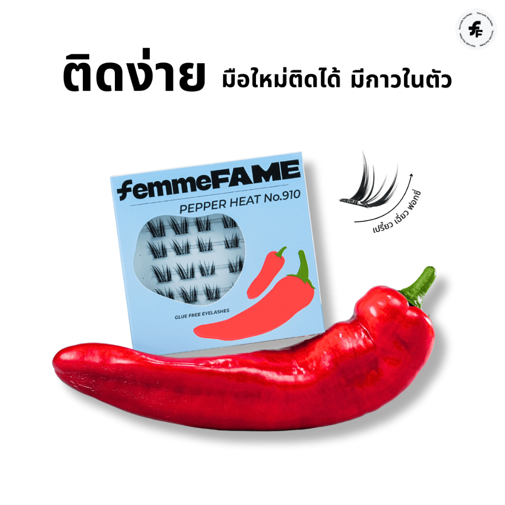 [ร้านไทย] FemmeFame ขนตาปลอมมีกาวในตัว รุ่น Pepper Heat No.910 พริกแดง - แถมแหนบคีบทุกกล่อง