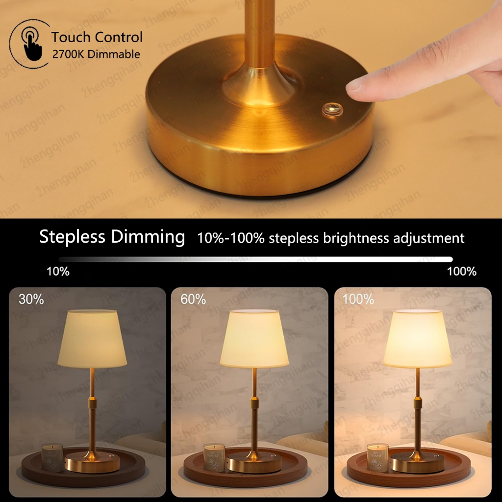 โคมไฟตั้งโต๊ะแบบชาร์จไฟได้ นํา ไร้สายสัมผัสเดสก์ท็อปไฟกลางคืนสําหรับร้านอาหารตกแต่งห้องนอน แสงสว่าง