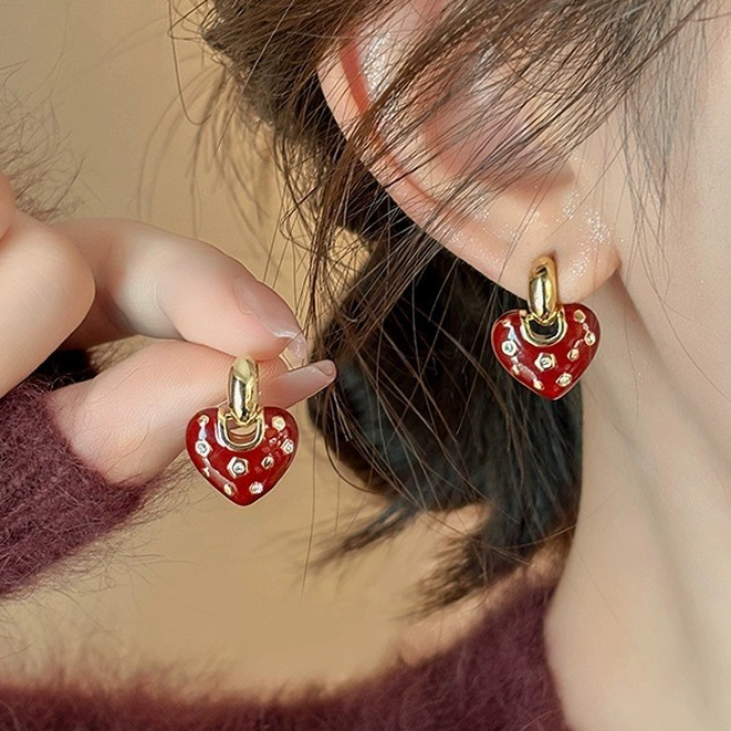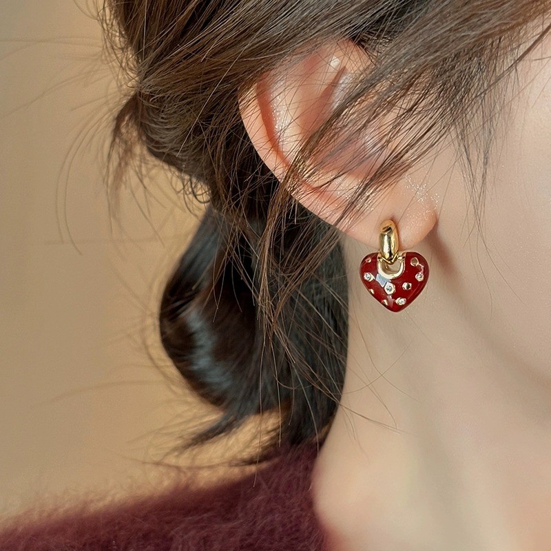 [GG] 925 เงินเข็ม เอ็นคอร์ ต่างหูหัวใจสีแดงเครื่องประดับสุภาพสตรีสไตล์ใหม่