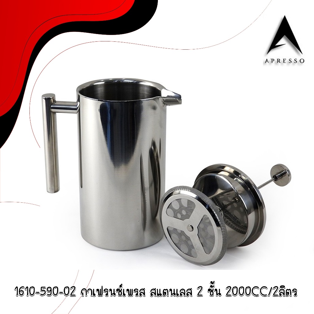 French press coffee maker, 2-layer stainless steel pot กาเฟรนช์เพรส ชงกาแฟ ตีฟองนม กาสแตนเลส 2 ชั้น 1610-590