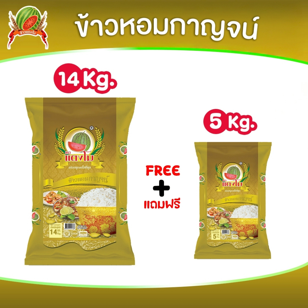 [✅แนะนำ] ข้าวสาร หอมกาญจน์ ได้รับข้าว 19 กก. ตราแตงโม ขนาด 14กก+แถมฟรี 5กก ข้าวนิ่มหอมฟู หุงขึ้นหม้อ