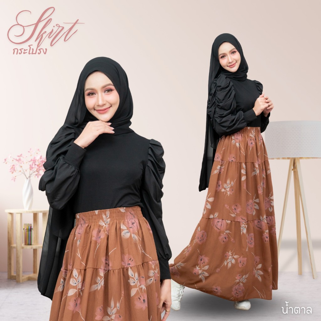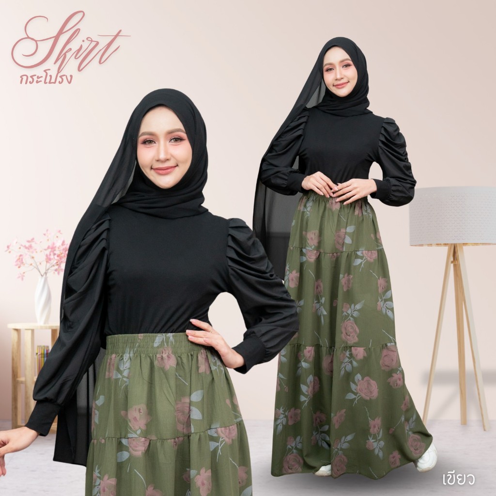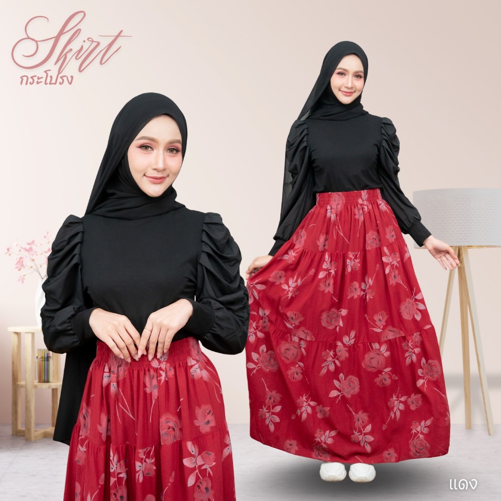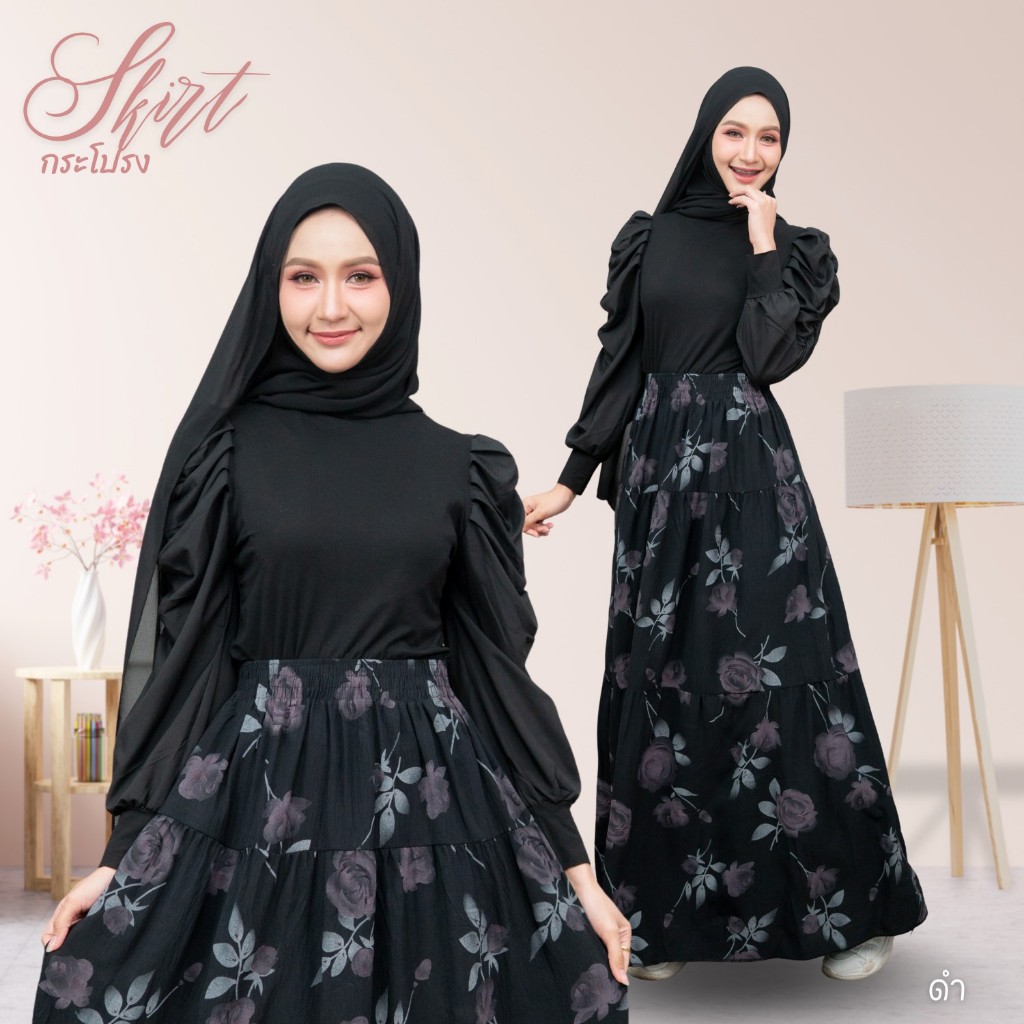 กระโปรงยาวแฟชั่น ทรงขนมชั้นลายดอกไม้ สวมใส่แล้วดูน่ารัก ใส่ได้หลากหลายโอกาส KA16วาริสมุสลิม