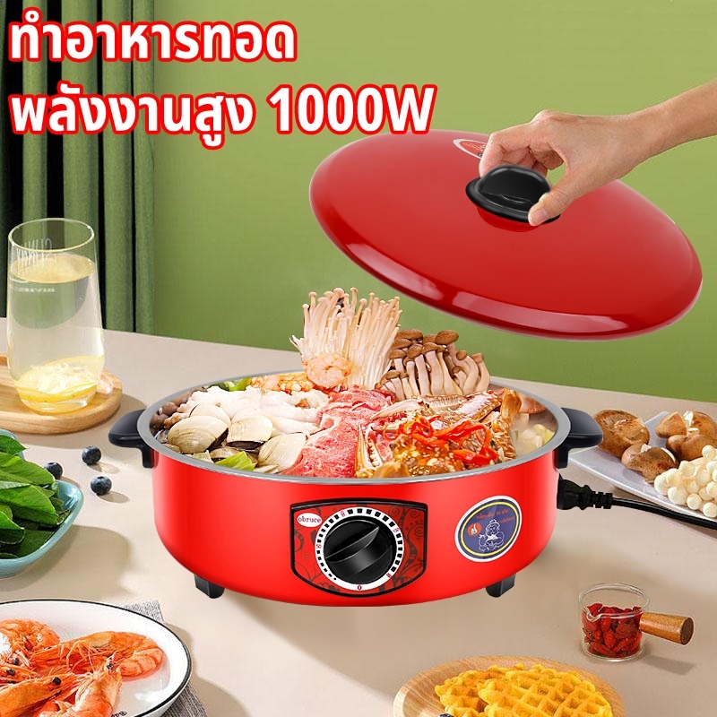 จัดส่งภายใน 24 ชั่วโมง กระทะไฟฟ้ กระทะไฟฟ้าในครัวเรือน 4L หม้อแดง1000W ทอดและปรุงอาหารไฟฟ้าสำหรับ 2-8 คน