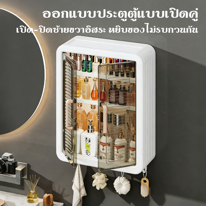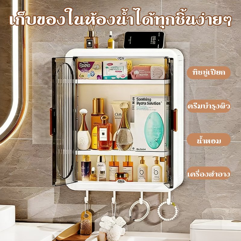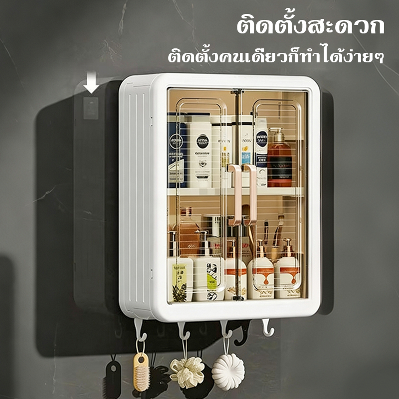 ตู้เก็บของติดผนัง ชั้นวางเครื่องสำอางในห้องน้ำ ตู้ใส่ของในห้องน้ำ ตู้ติดผนังในห้องน้ำ 3 ชั้น,ขั้นตอนการติดตั้งง่ายดาย