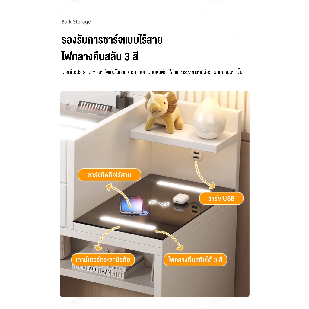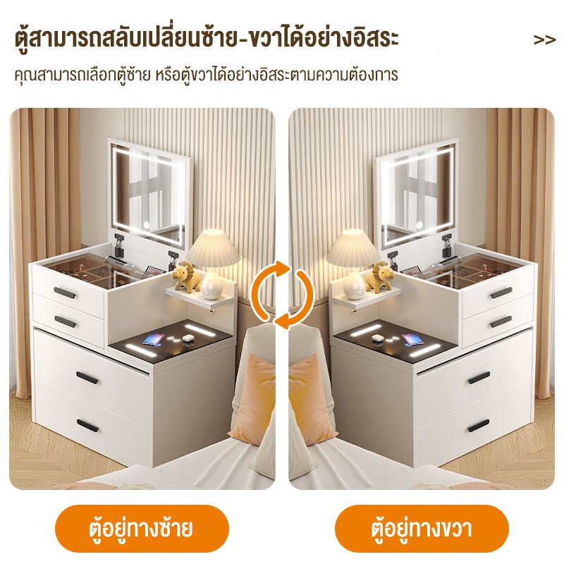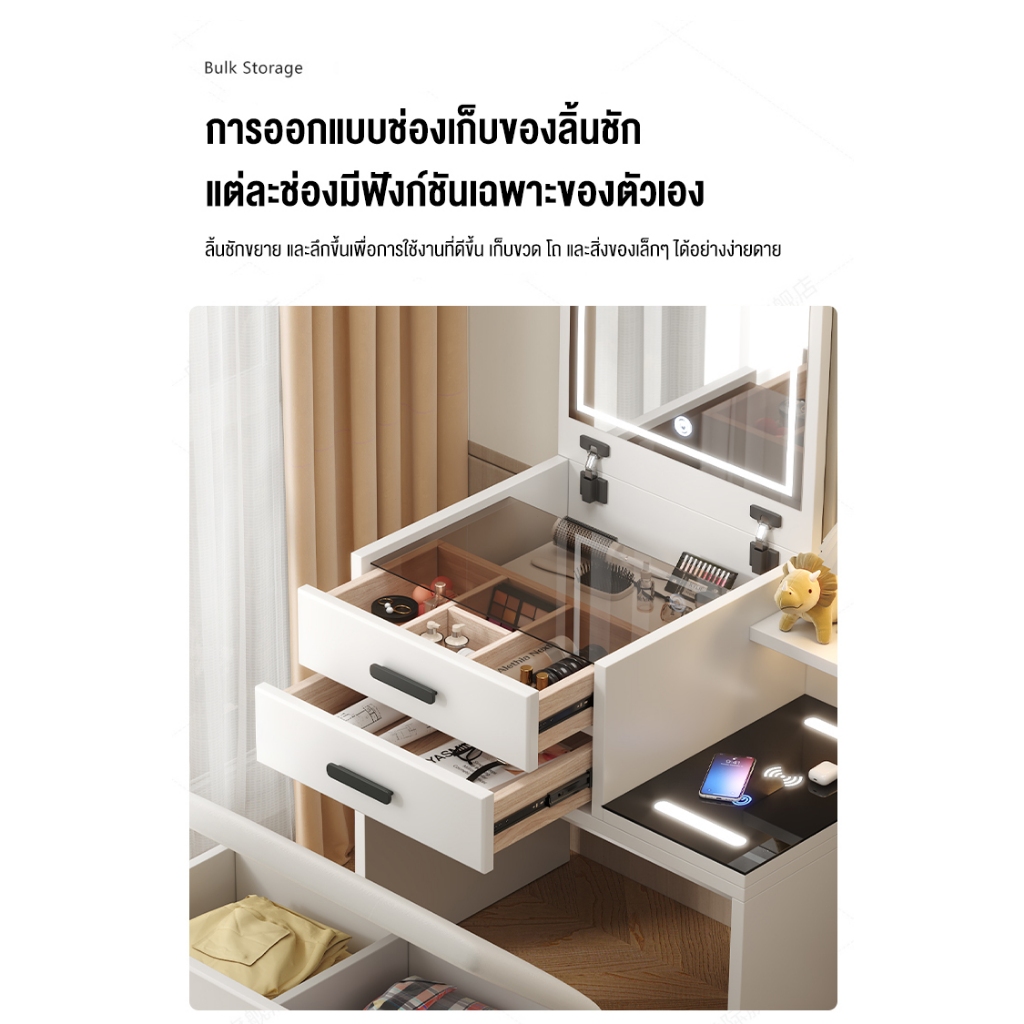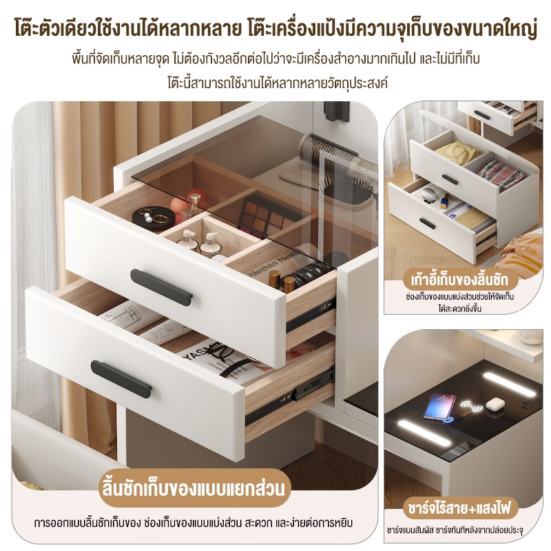BAIERDI โต๊ะเครื่องแป้งและโต๊ะข้างเตียงไม้เนื้อแข็งอเนกประสงค์ เรียบง่าย มาพร้อมไฟสัมผัสสามสีและการชาร์จโทรศัพท์แบบไร้ส