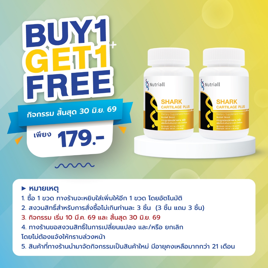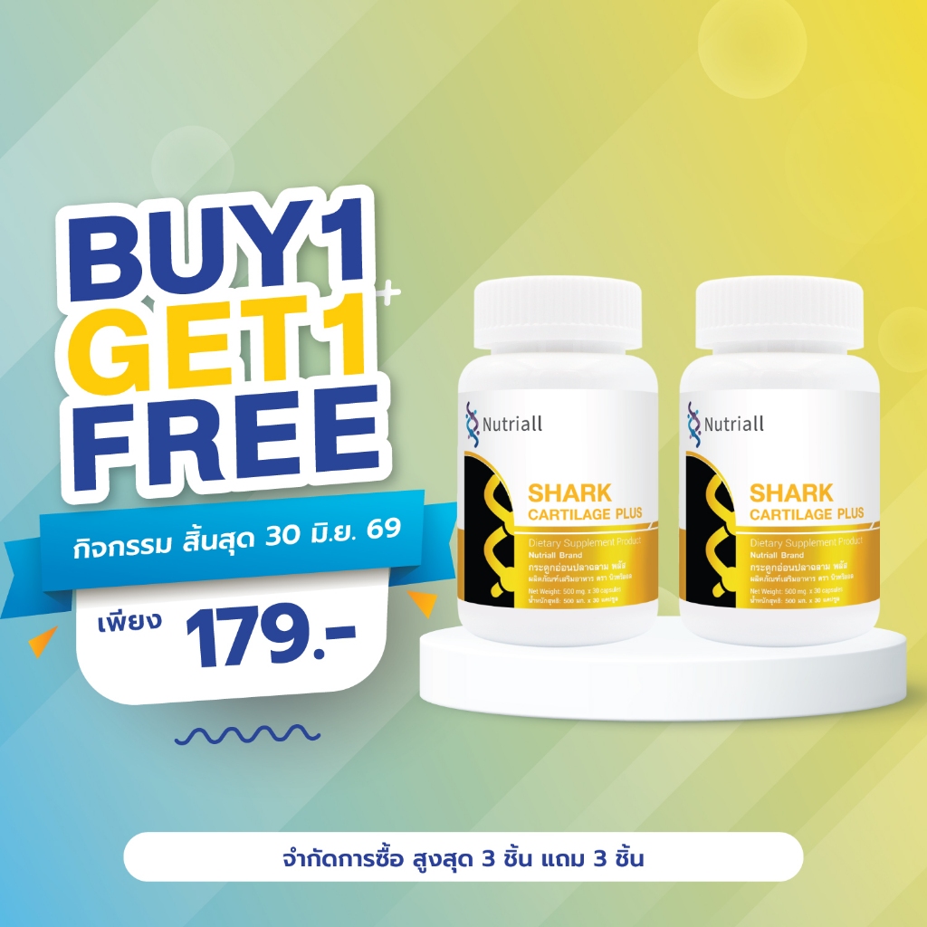 [ซื้อ 1 แถม 1] กระดูกอ่อนปลาฉลาม พลัส นิวทริออล Shark Cartilage plus Nutriall คอลลาเจน เปปไทด์ ไตรเปปไทด์ ไทพ์ทู