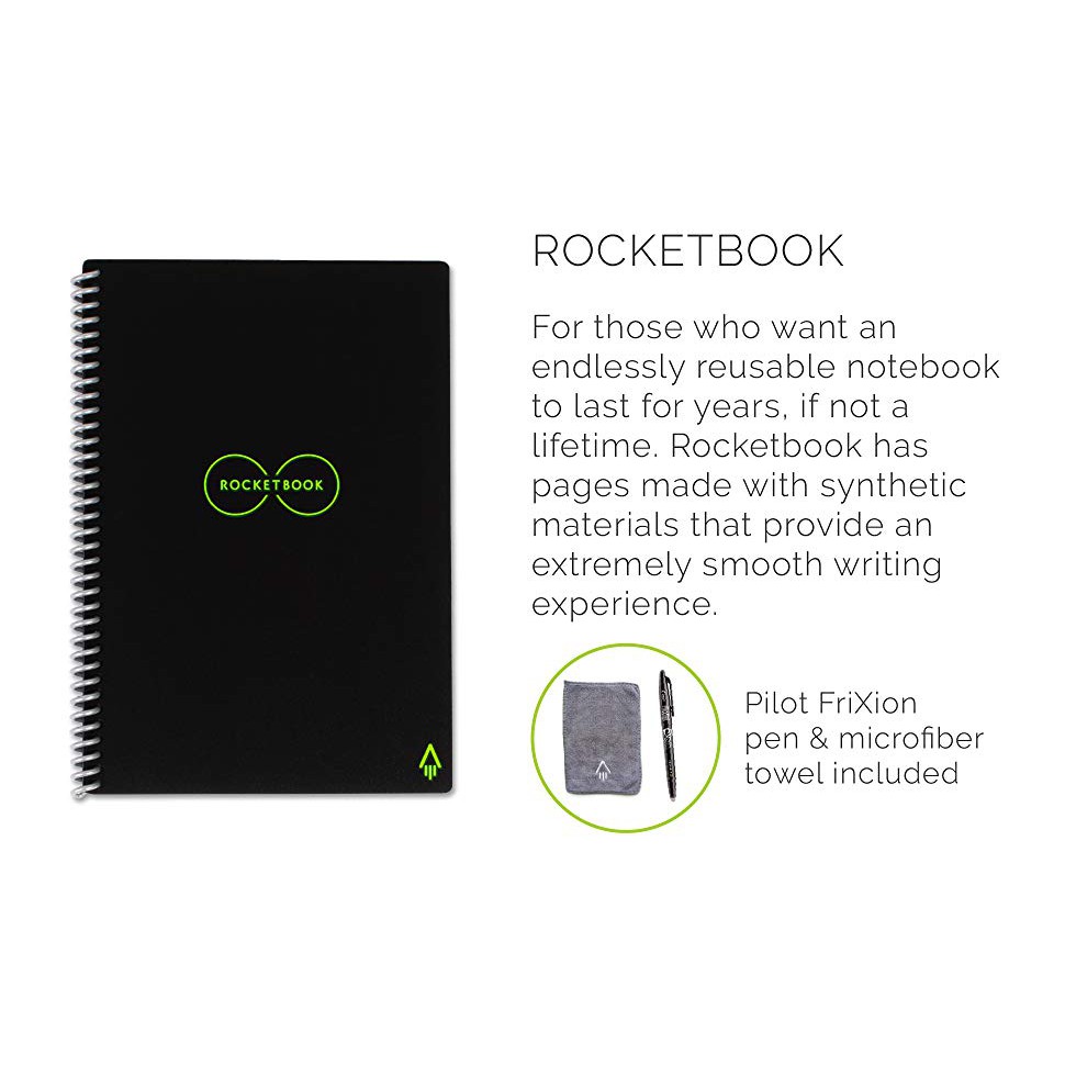 Rocketbook Smart Core Reusable Notebook Lined EcoFriendly Notebook with Pilot Frixion Pen & Cloth USA Imported Authentic