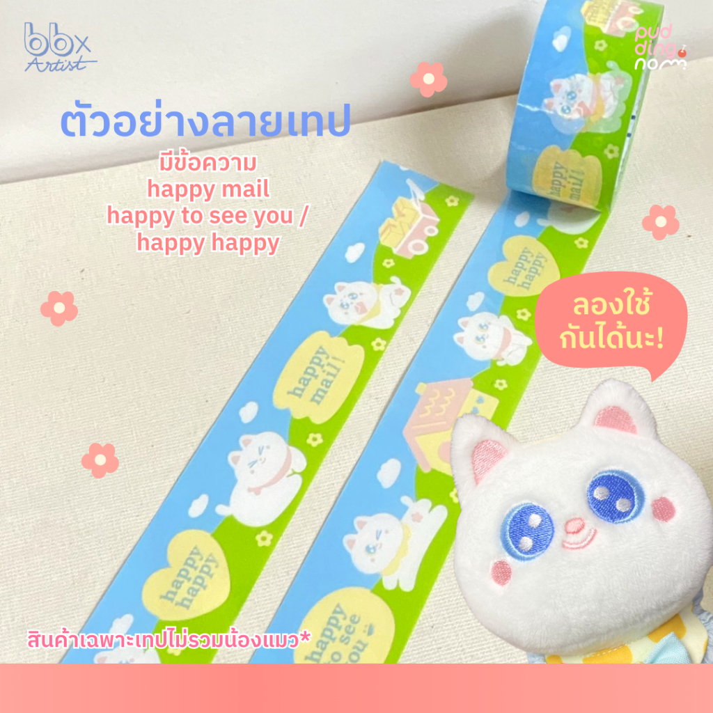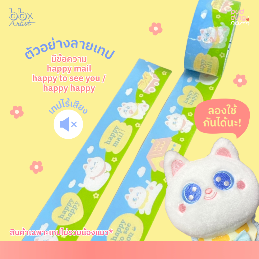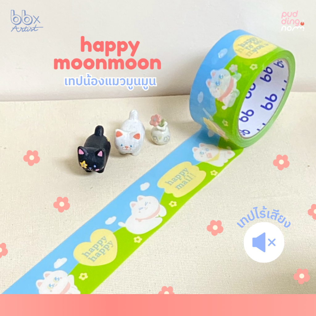 เทปไร้เสียง Happy Moon Moon🌞🌈(ม้วน)2 นิ้ว 45 หลา น้องแมว มูน มูน🐱 no noise tape เทปกาว