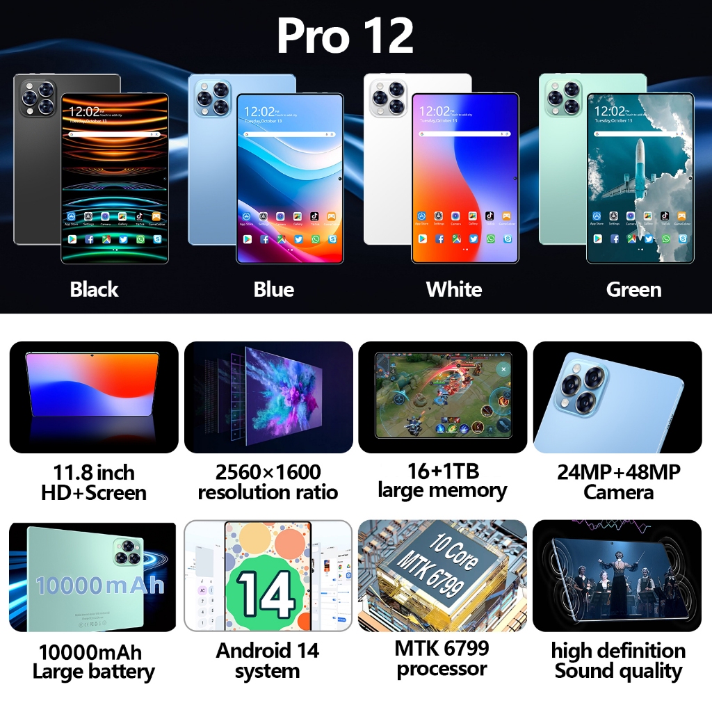 GAMING FREAK แท็บเล็ต 12 Pro (16GB+1TB) แท็บเล็ต รองรับซิมการ์ด | หน้าจอ 11.8" 90Hz | แบตเตอรี่ 10000mAh รับประกัน1ปี
