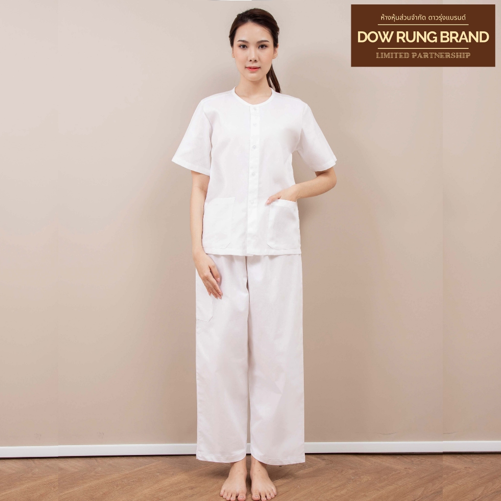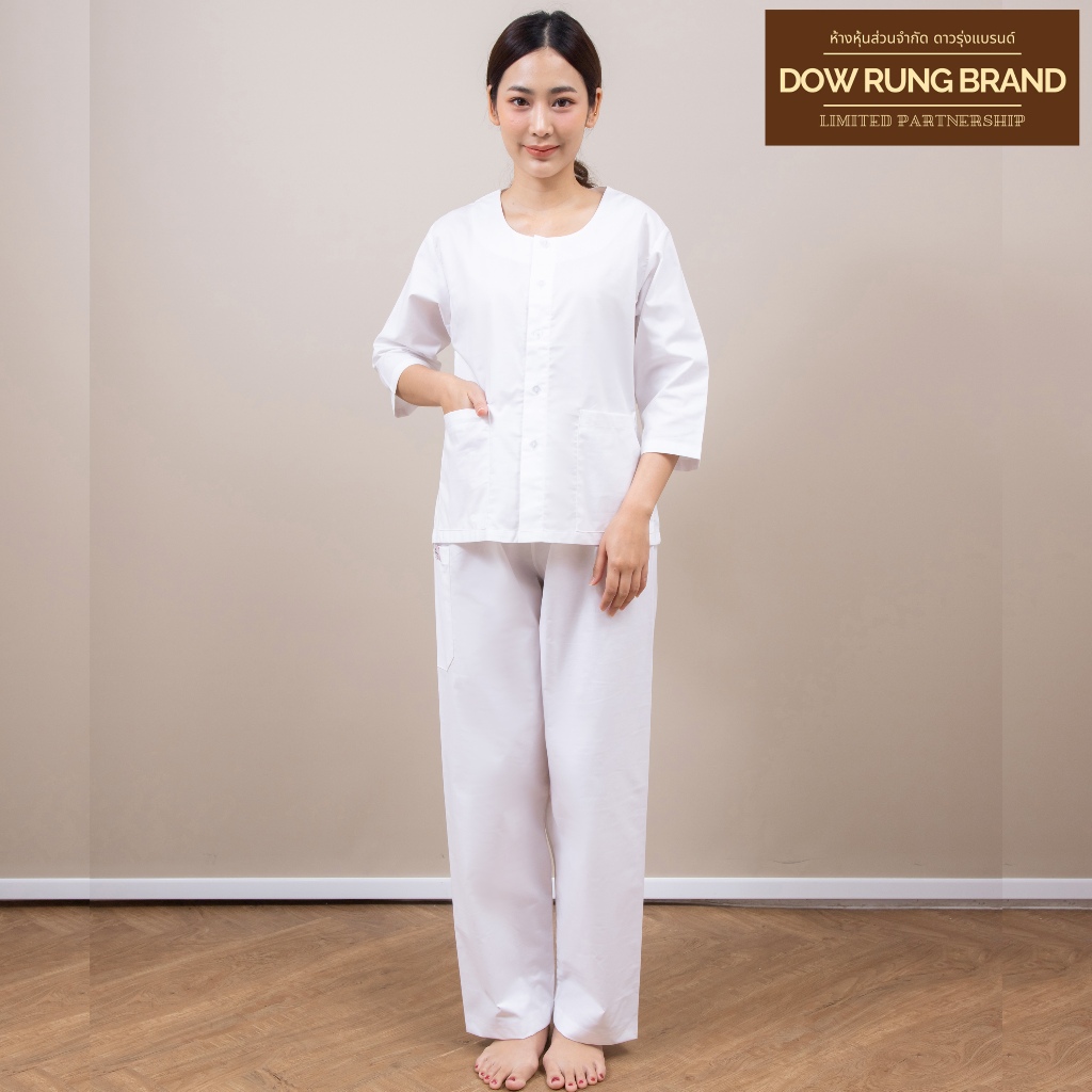 ชุดขาวปฏิบัติธรรม เนื้อผ้าฝ้ายoxford (ชุดเซตเสื้อแขนสั้นและแขนสามส่วน+กางเกง) ร้านผ้าขาวดาวรุ่ง
