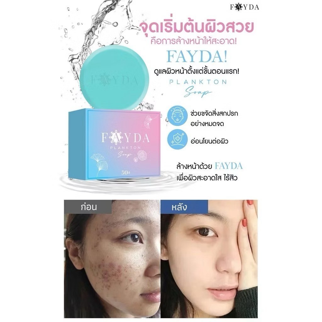 สบู่เฟย์ด้า ของแท้ FayDa planktonsoap สบู่รักษาสิว ขนาด 50 กรัม สบู่ธรรมชาติ ทำความสะอาดอ่อนโยน บำรุงและเติมความชุ่มชื้น