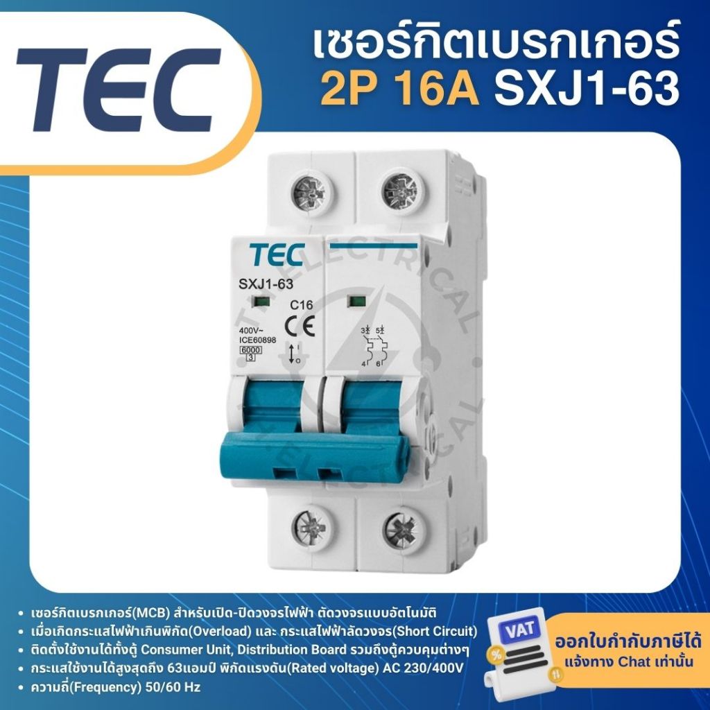 TEC SXJ1-63 เซอร์กิตเบรกเกอร์ MCB เกาะราง DINRAIL 2P 6A 10A 16A 20A 25A 32A 50A 63A