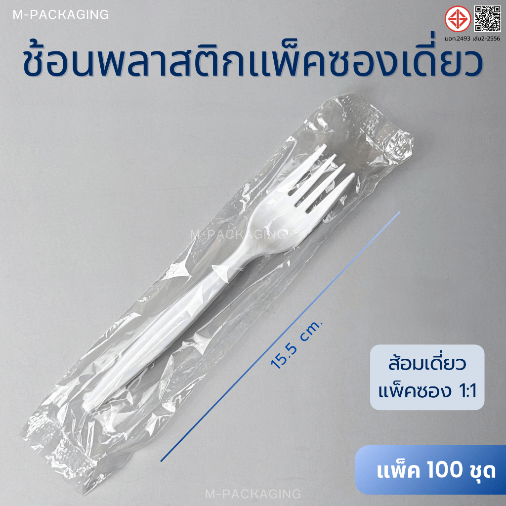 ช้อนส้อมพลาสติกหุ้มซอง เเพ็ค100ชิ้น รุ่น MP-05W MP-06W