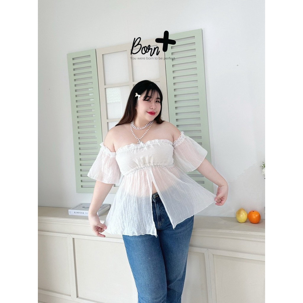 /BP/ เสื้อสาวอวบ มีไซส์อก38-60 ปาดไหล่ทรงเกาะอก แต่งระบาย น่ารักมาก #เสื้อไซส์ใหญ่ พลัสไซส์