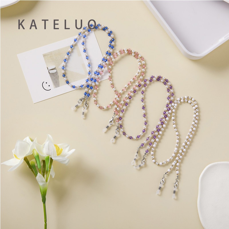 คาเทลูโอ ลูกปัดแว่นตาโซ่สำหรับผู้หญิงและสาว มัลติฟังก์ชั่นหน้ากากแว่นตาเชือกเส้นเล็กแว่นกันแดดผู้ถือสายรอบคอลูกปัดหน้ากากโซ่หนีบสร้อยคอมัลติฟังก์ชั่น