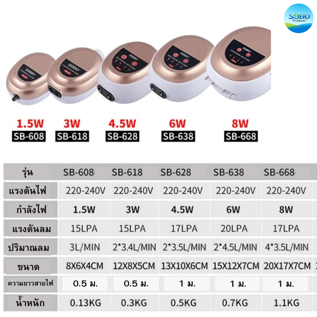 ปั๊มลมออกซิเจน 1 ทาง / 2 ทาง / 4 ทาง SOBO SB-608 ,SB-618 ,SB-628 ,SB-638 ,SB-668 เงียบสุดๆ